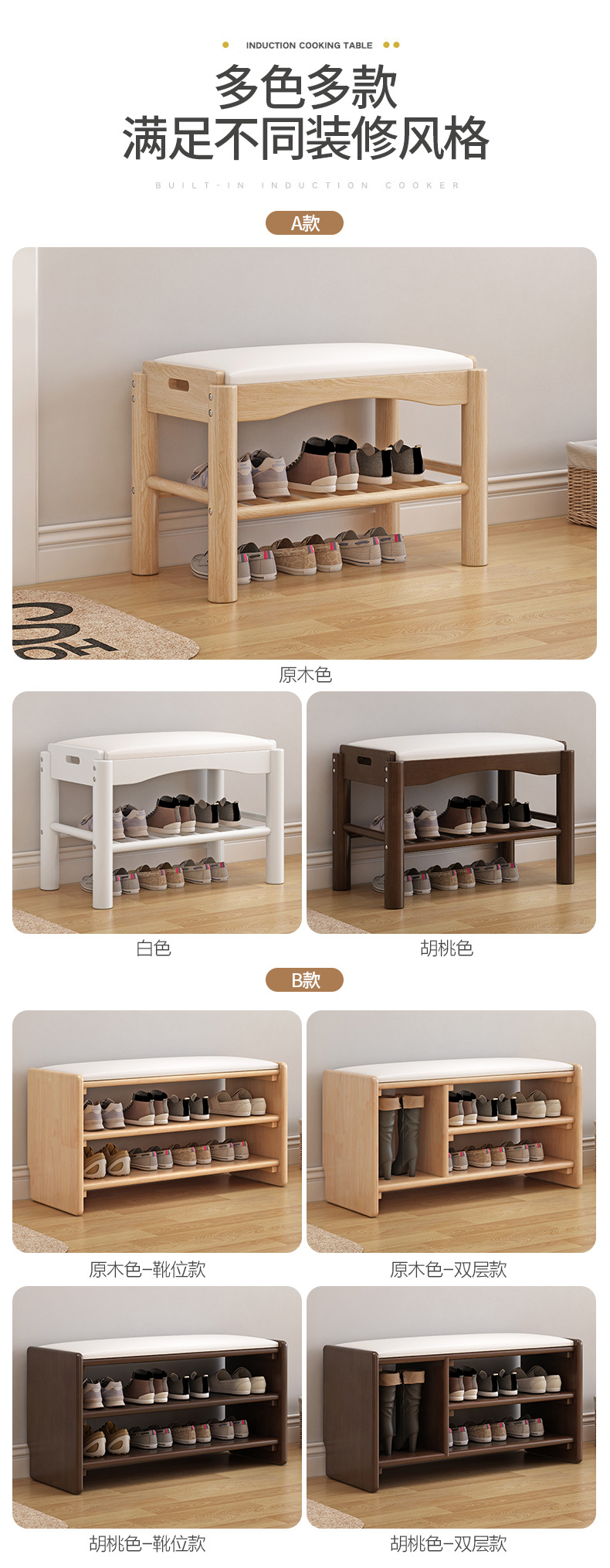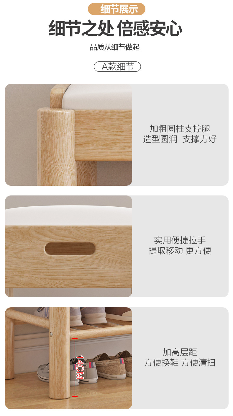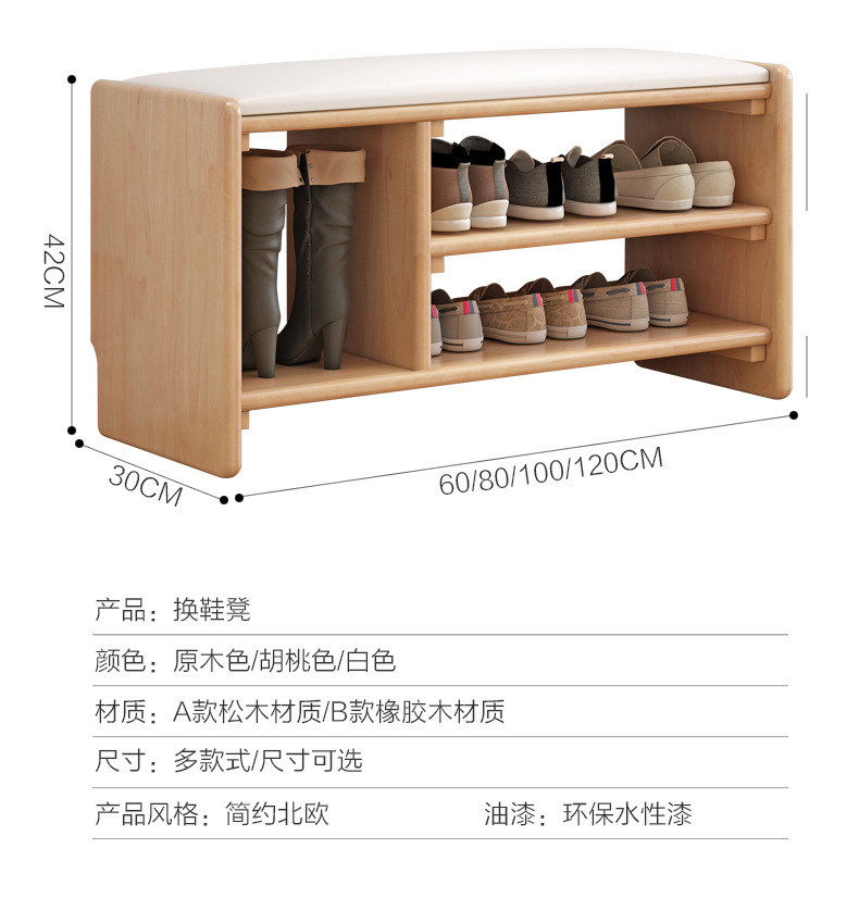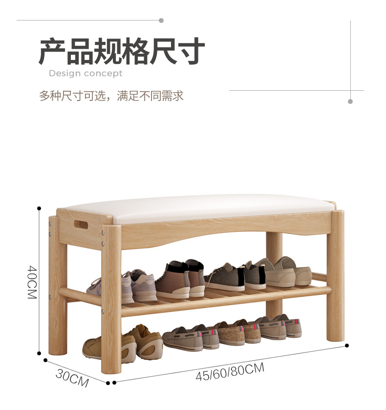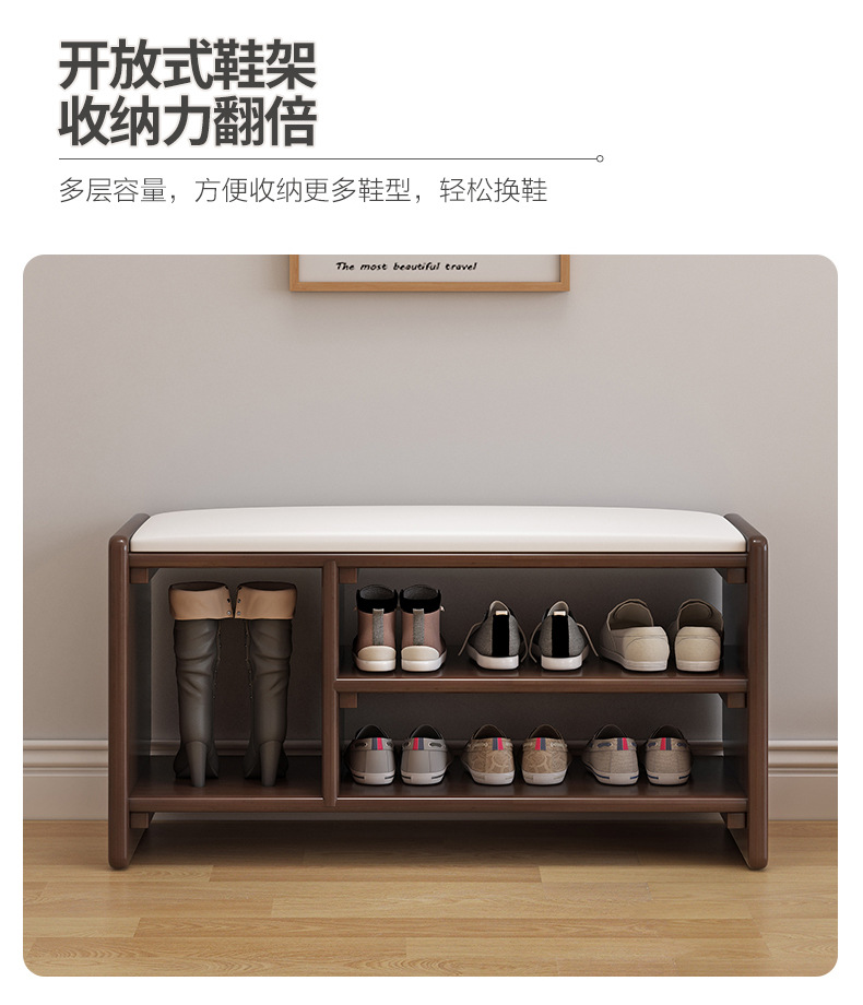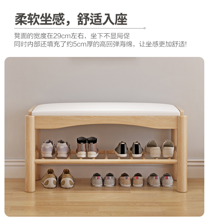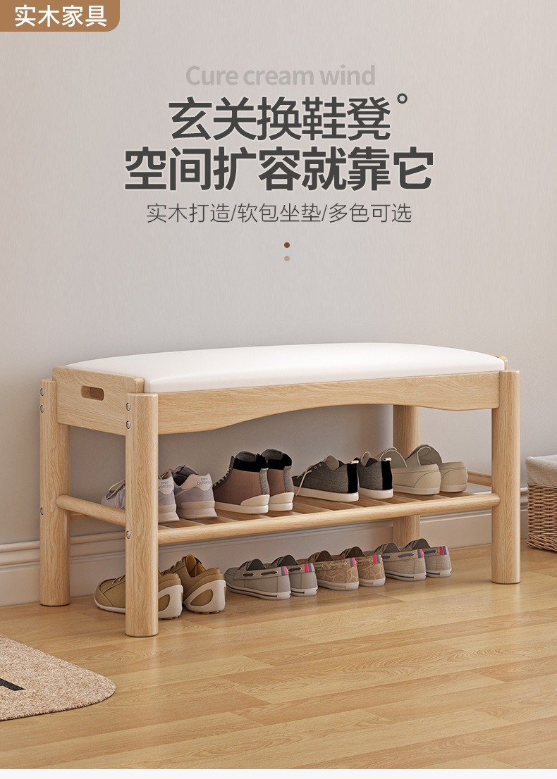 All Solid Wood Shoe Rack Home Shoe Changing Stool Solid Wood Light Luxury Internet Famous Shoe Cabinet with Upholstered Modern Simple Nordic Shoe Changing Stool