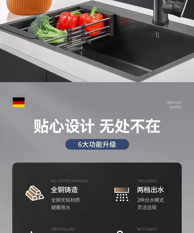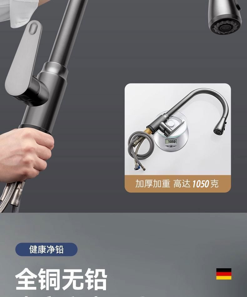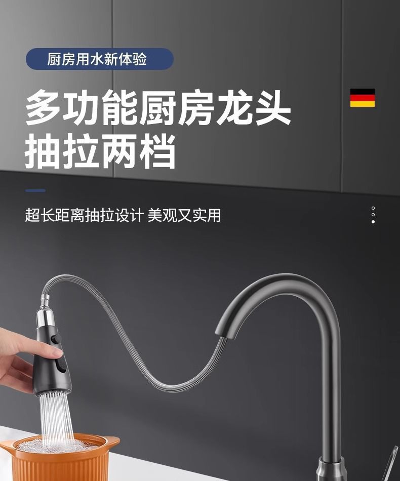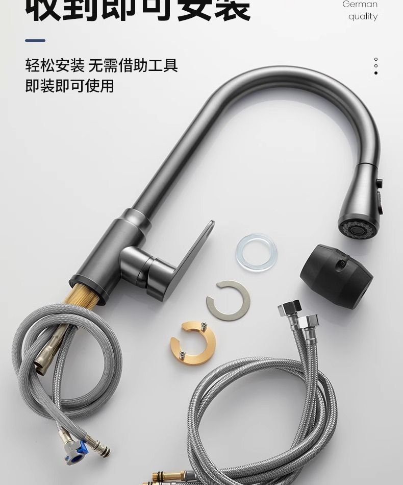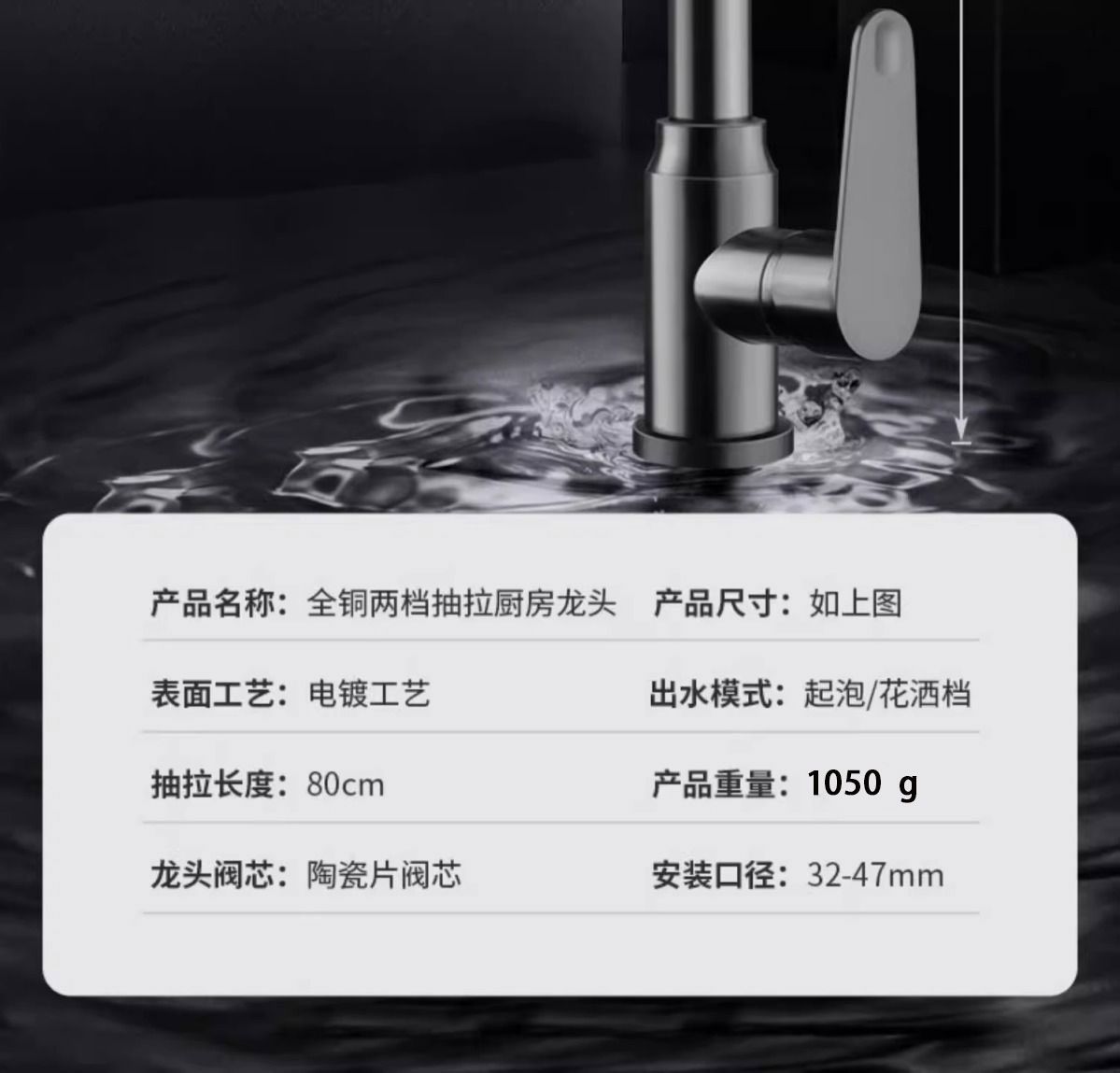 All copper pull out kitchen faucet cold and hot water dual use dish washing basin dish washing basin dish washing pull telescopic splash proof universal