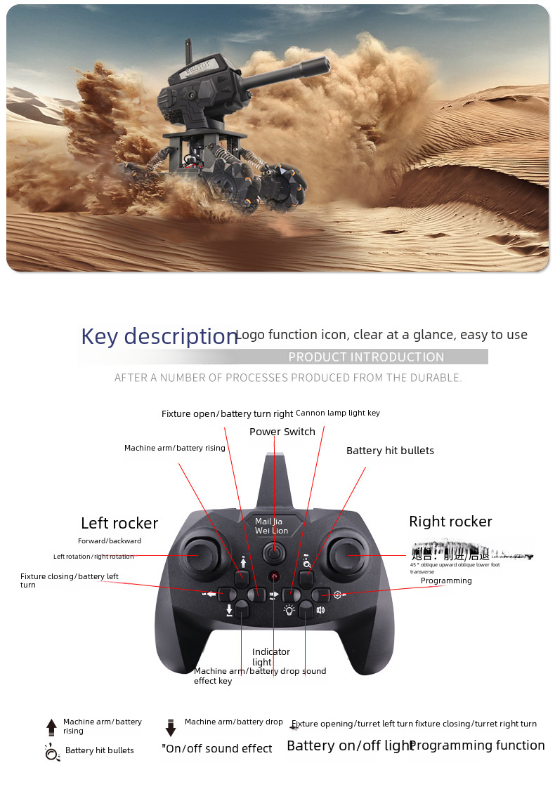 Alloy programming remote control tank toy car electric launch water bomb children s science and education DIY four wheel drive off road climbing car