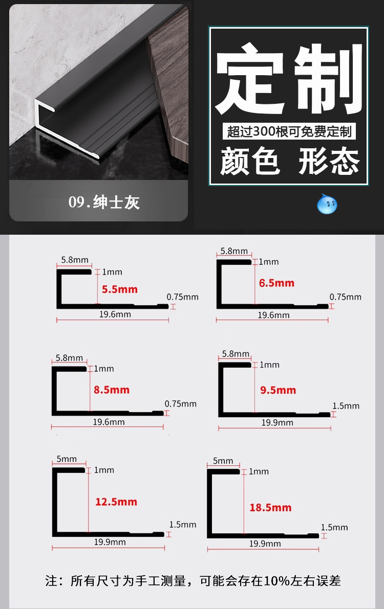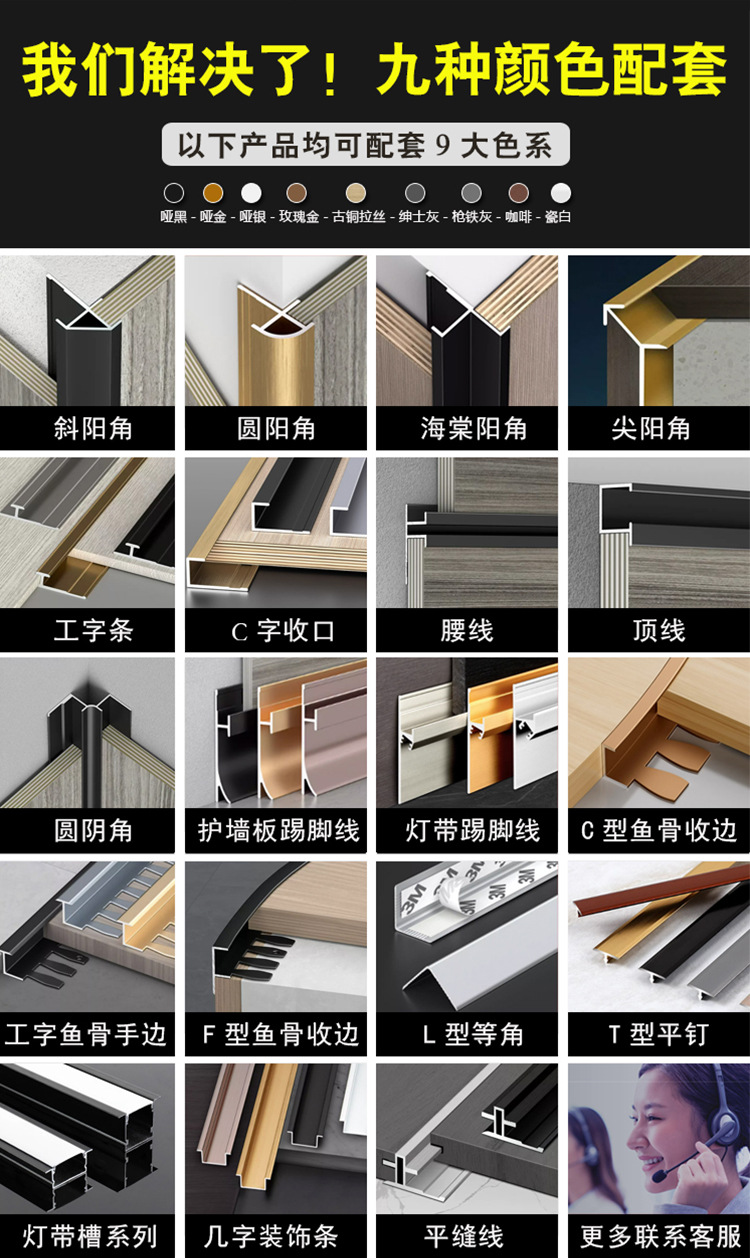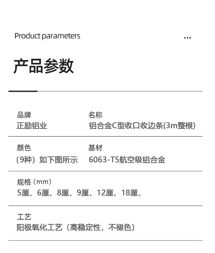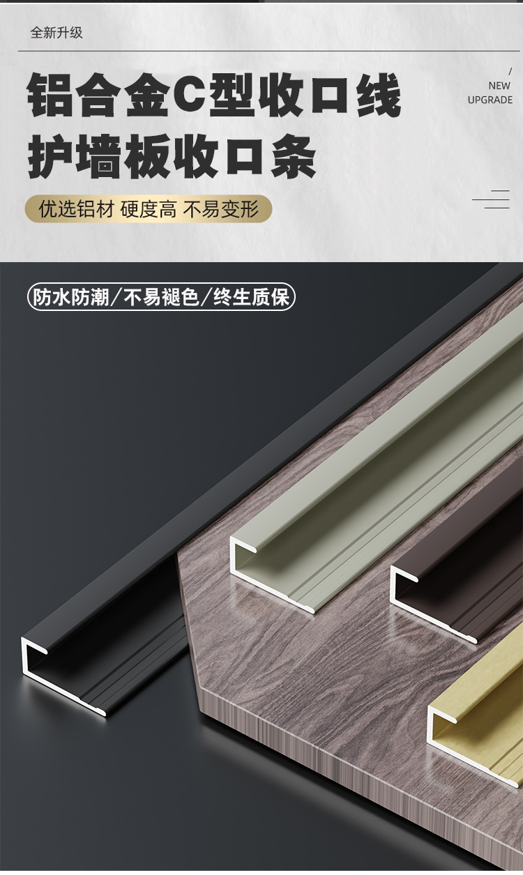 Aluminum alloy C shaped edging strip wall panel wood veneer closing strip floor pressure strip simple metal decorative line
