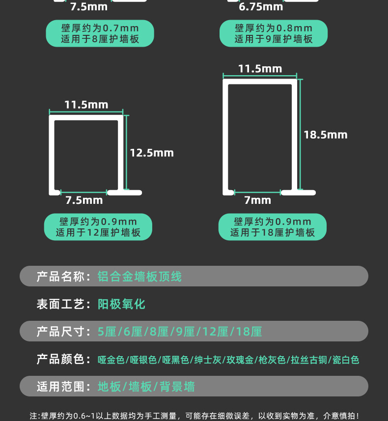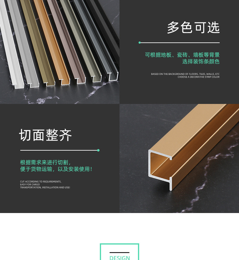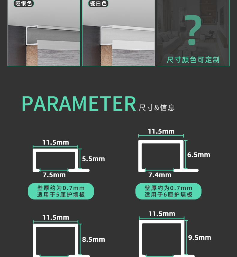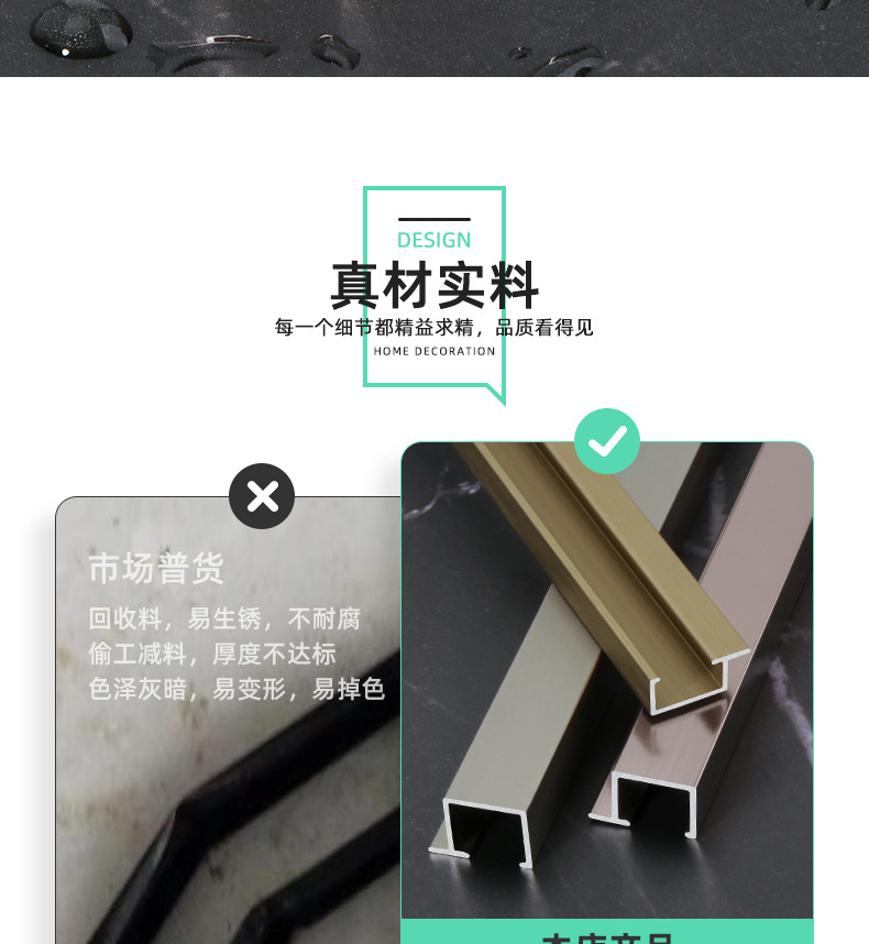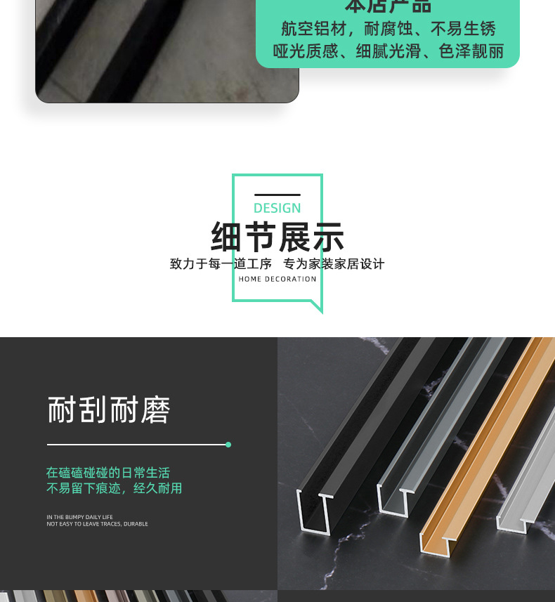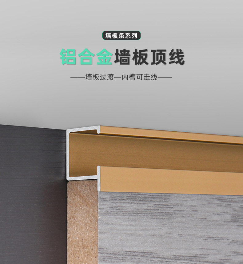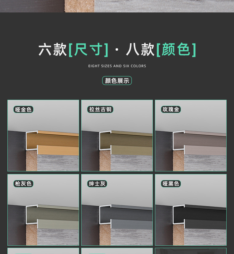 Aluminum alloy wallboard top line U shaped line 8mm rock plate carbon crystal plate ceiling closing strip wall top corner closing strip