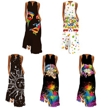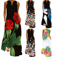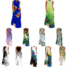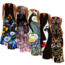 Amazon AliExpress Cross border Source Women s Sleeveless Dress V Neck Printed Dress Chinese Style Trendy Dress