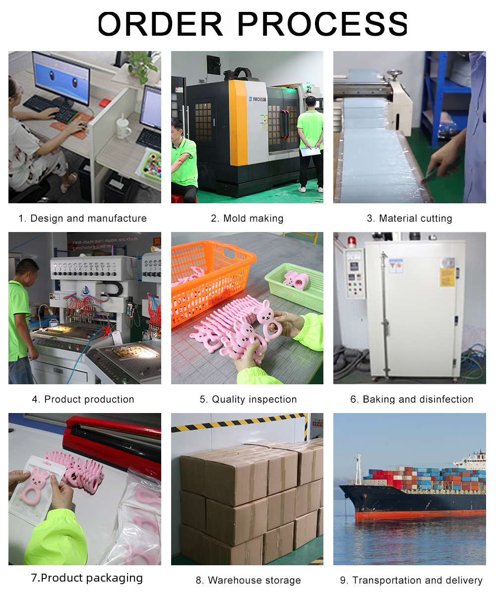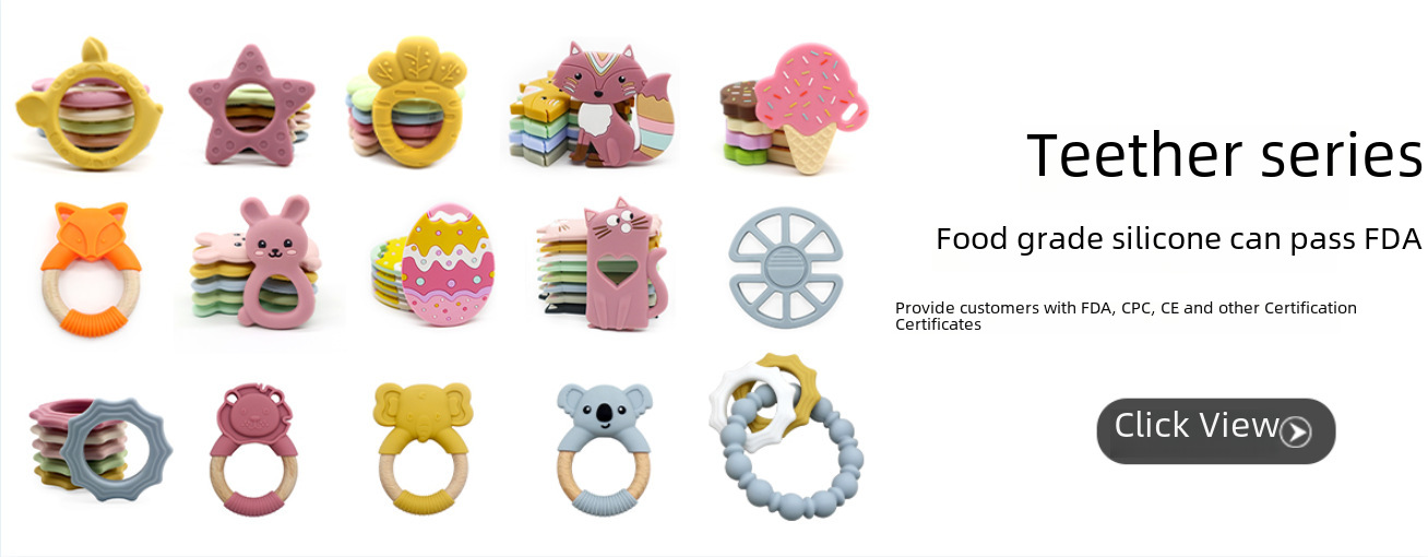 Customized Silicone Teethers:These teethers are customized to provide a unique teething experience for your baby. They are designed with food-grade silicone, ensuring safety and quality.