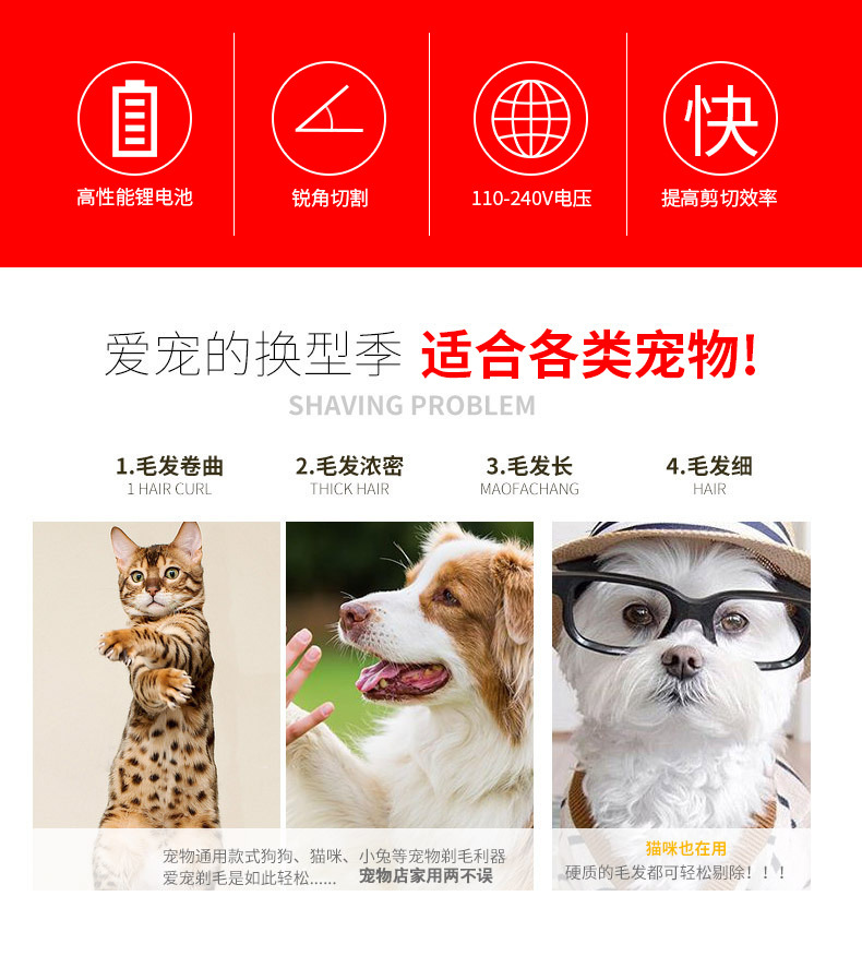 Amazon Hair Pusher Dog Hair Shaving Pet Electric Clipper Electric Clipper suit Cat Hair Cutter