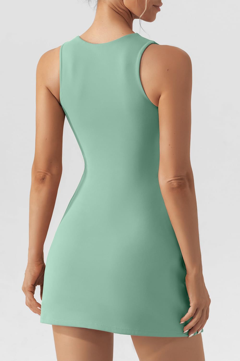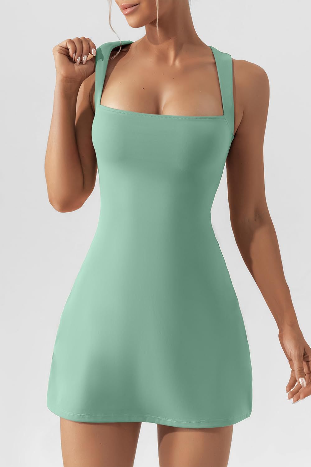 Amazon cross border 2023 Women s square collar tight dress sleeveless vest stretch horn mini dress