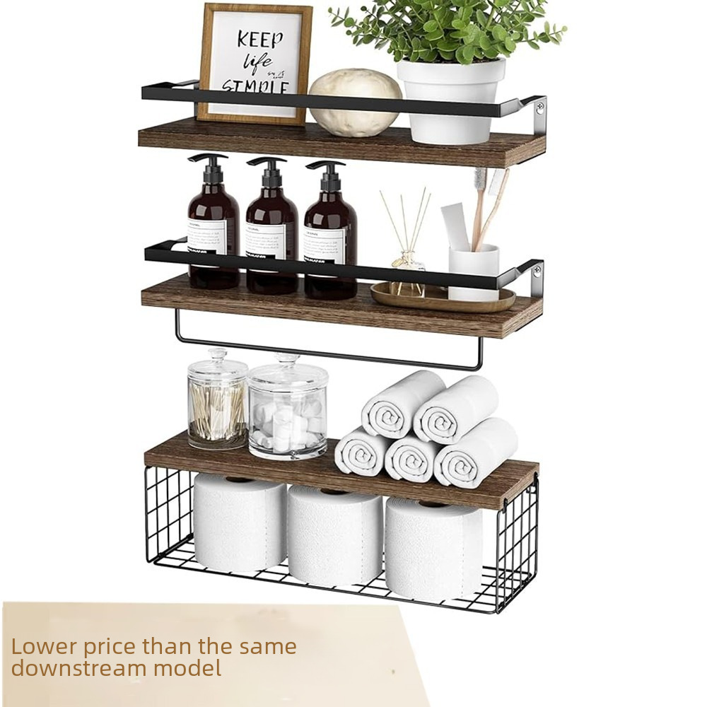 Amazon new bathroom living room wall mounted storage rack Wall multi functional storage rack suspended wood storage rack