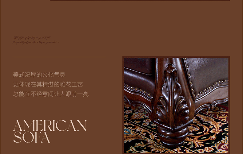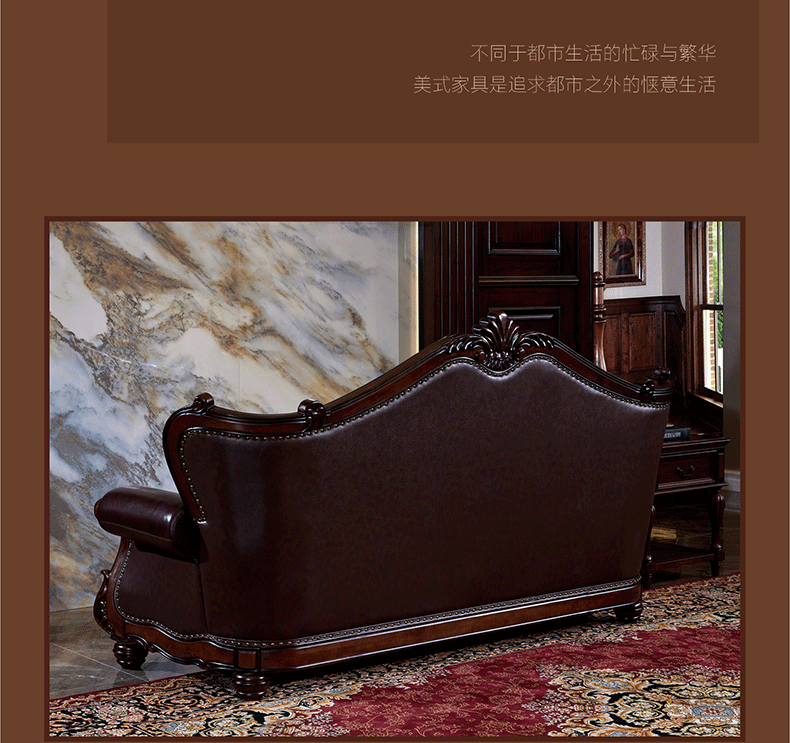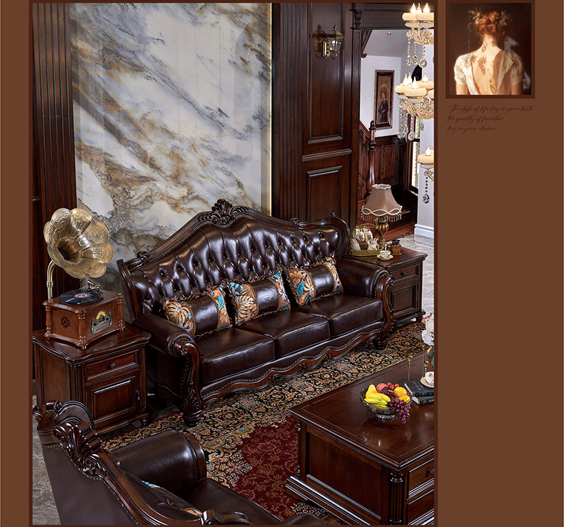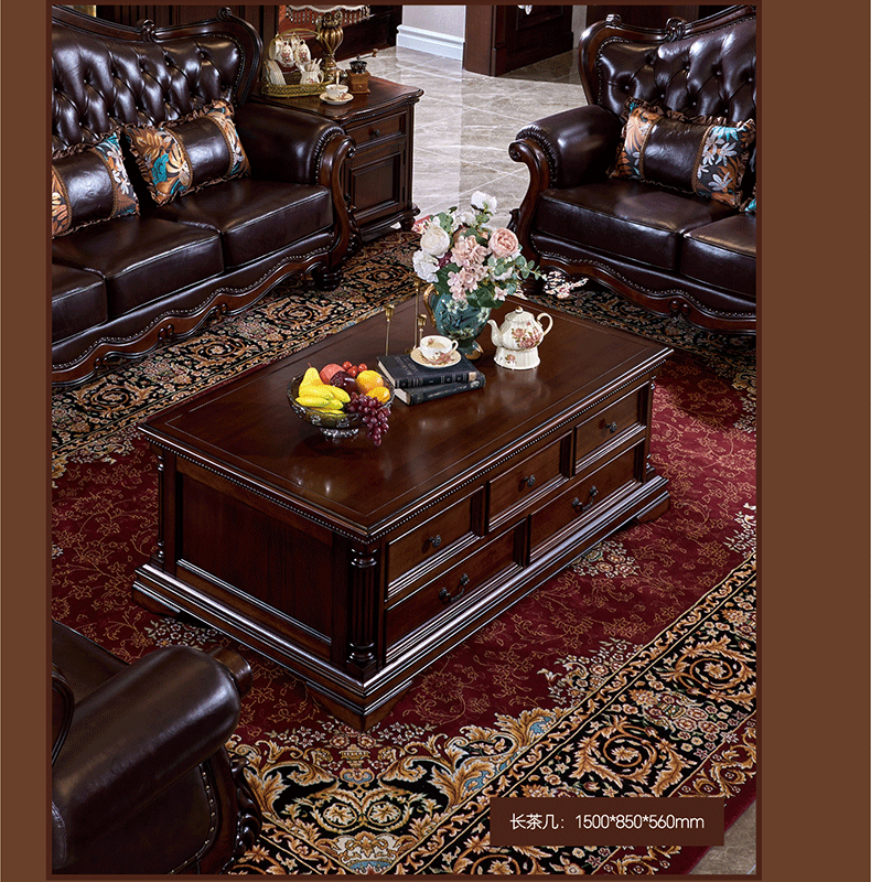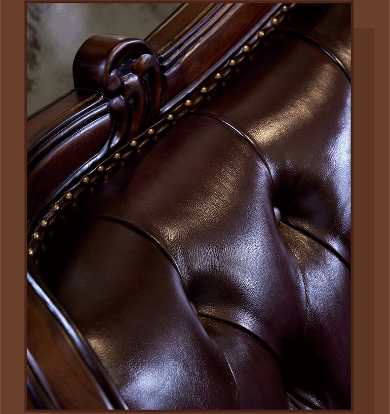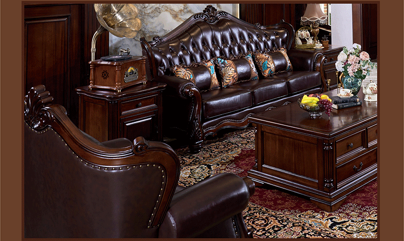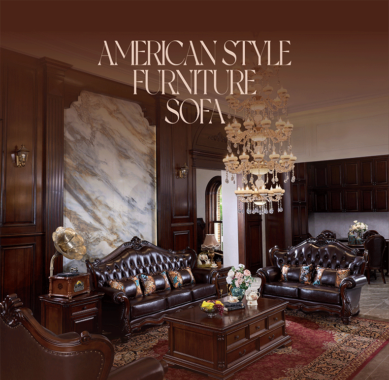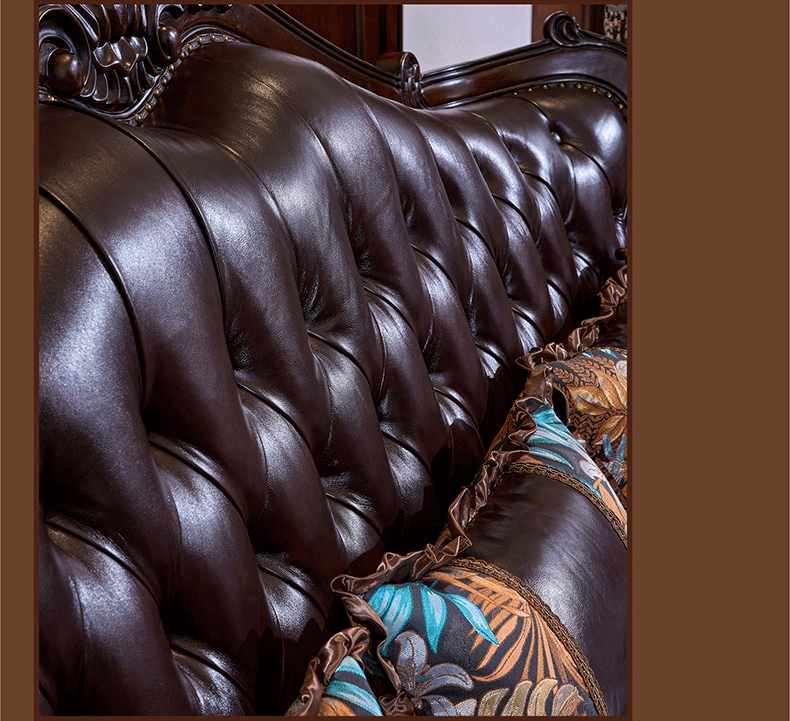 American Style Solid Wood Leather Sofa Carved Retro Luxury High end Villa Living Room Furniture European Style Sofa 123 Combination