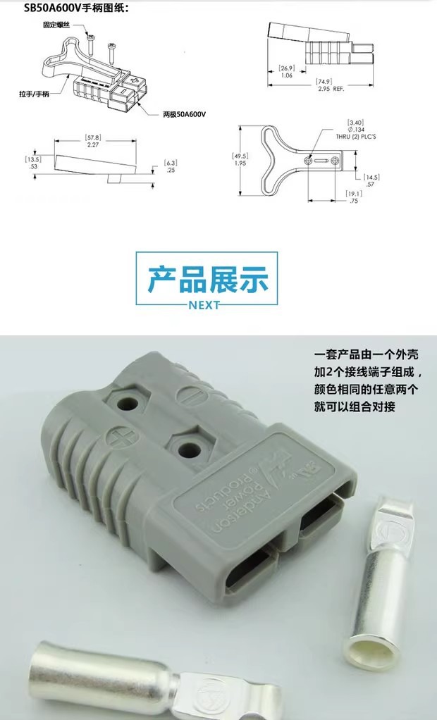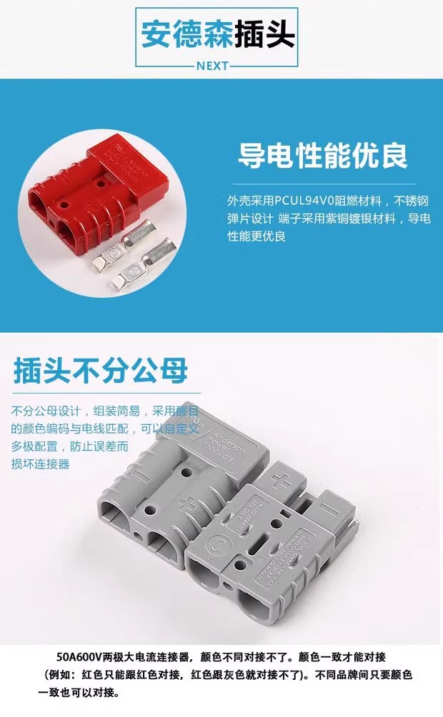 Anderson 50A175A350A Yigao battery sightseeing car Heli Forklift electric vehicle power connector plug