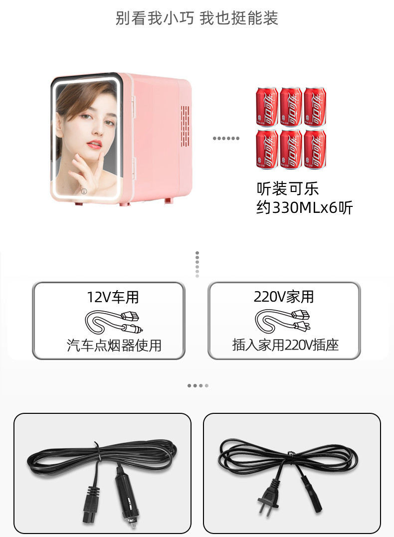 Annan Car Refrigerator Mirror Beauty Makeup LED Touch Light Makeup Mask Storage Mini Refrigerator Car Home Dual Use Refrigerator