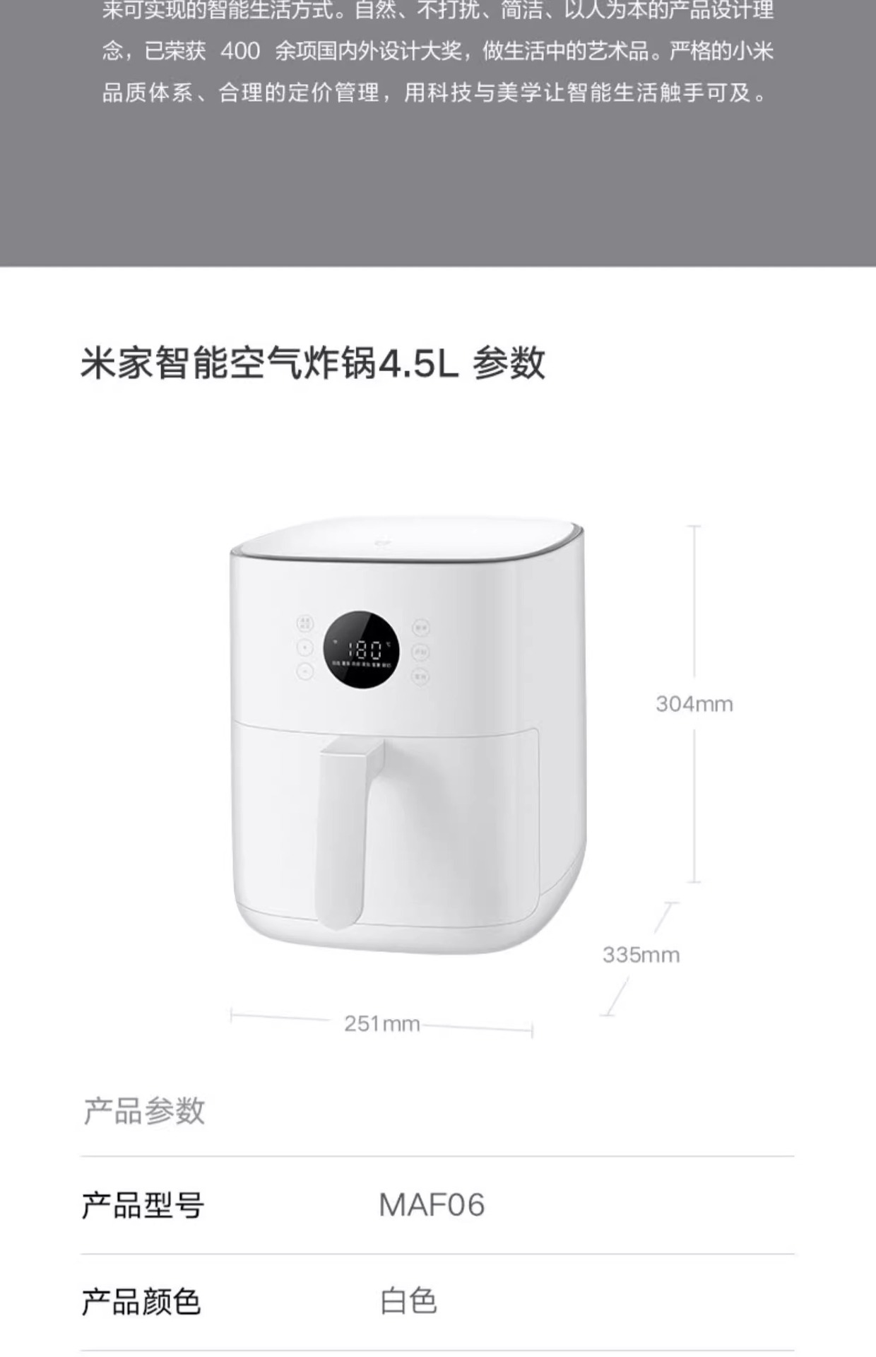 - Xiaomi MiJia intelligent air fryer 4.5L