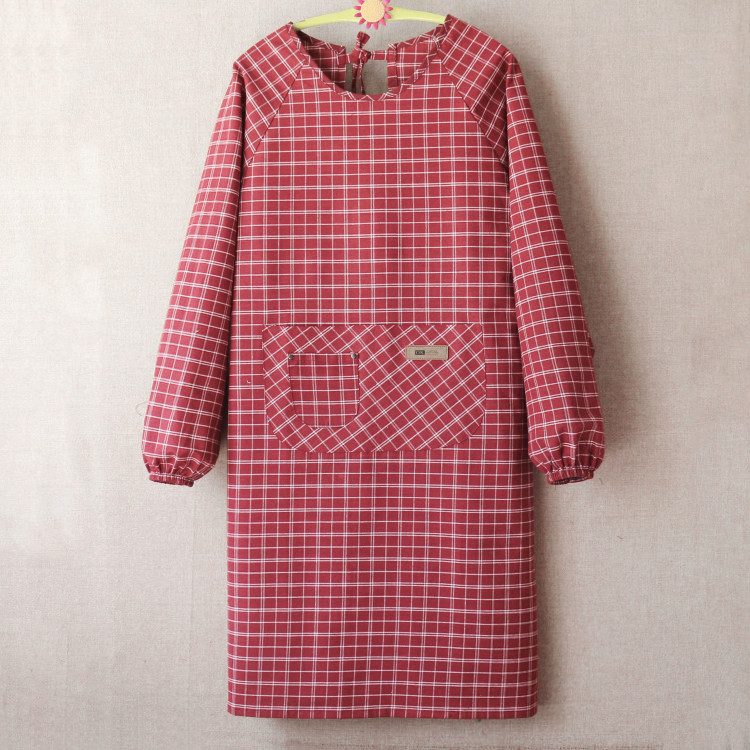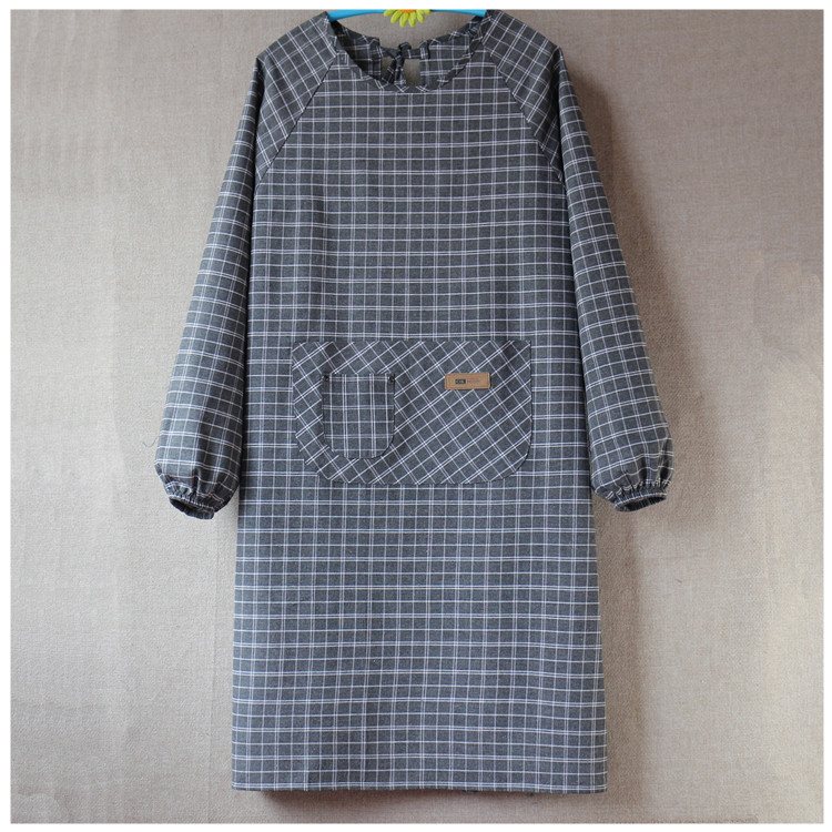 Apron long sleeve loose lengthened plus size men s smock with sleeves Korean style cotton reverse dressing with sleeves overalls