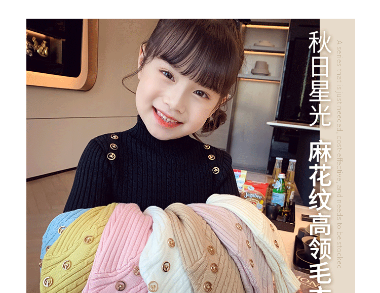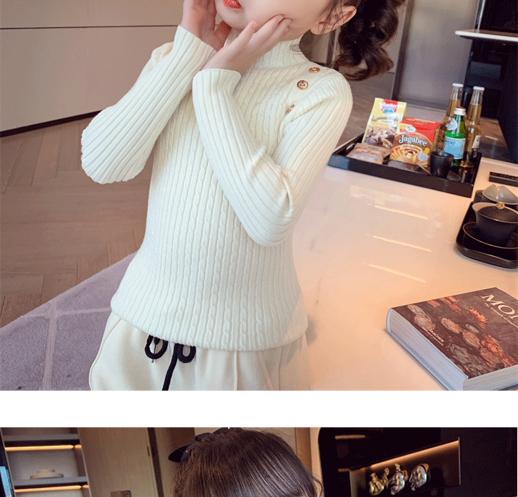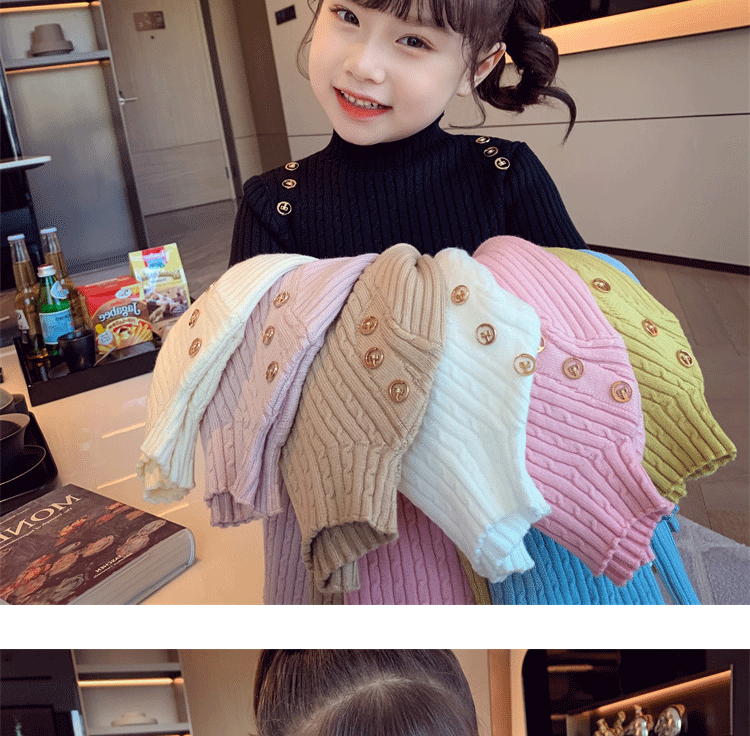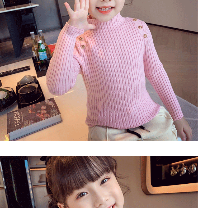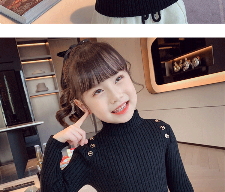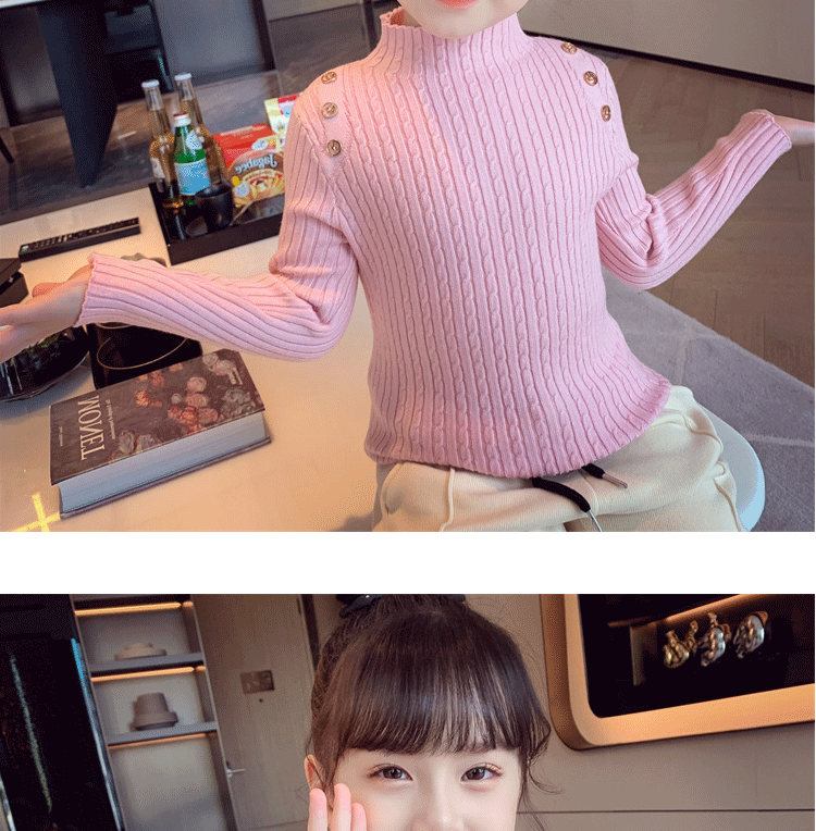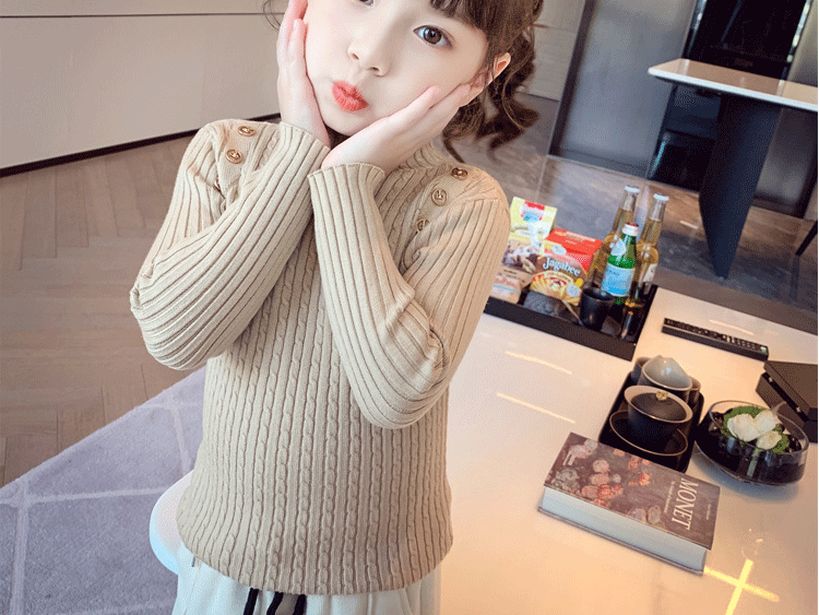 Autumn and Winter children s little girl bottoming shirt Korean style western style knitwear all match inner warm half turtleneck sweater
