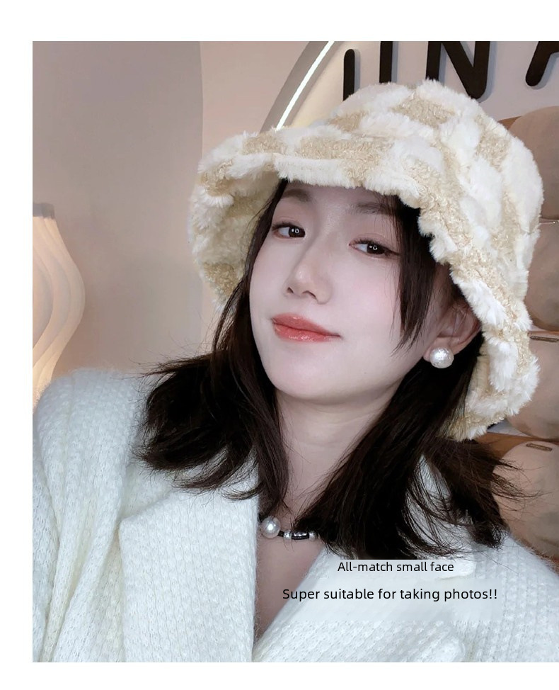 Autumn and Winter fisherman hat women s thickened warm cold proof windproof Korean fashion rabbit fur basin hat face looking small bucket hat