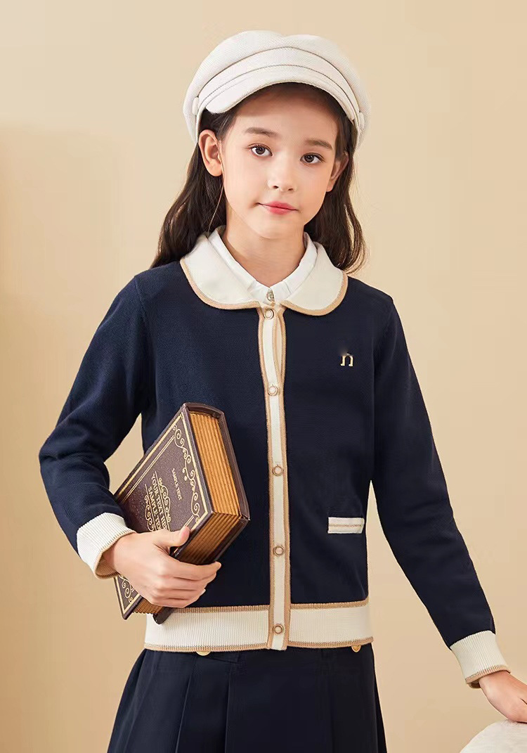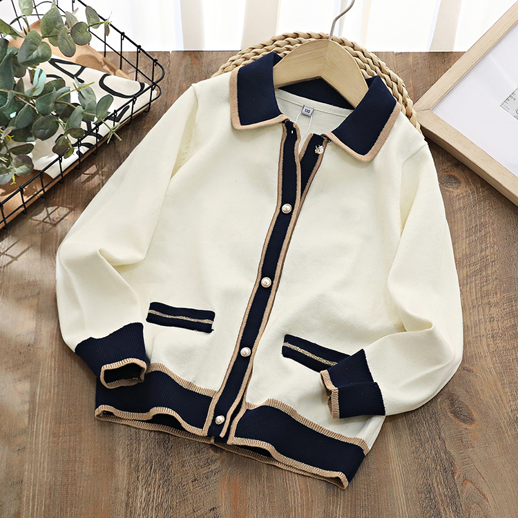 Autumn and Winter new children s contrast color sweater cardigan college style fashionable western style long sleeve knitted cardigan coat batch