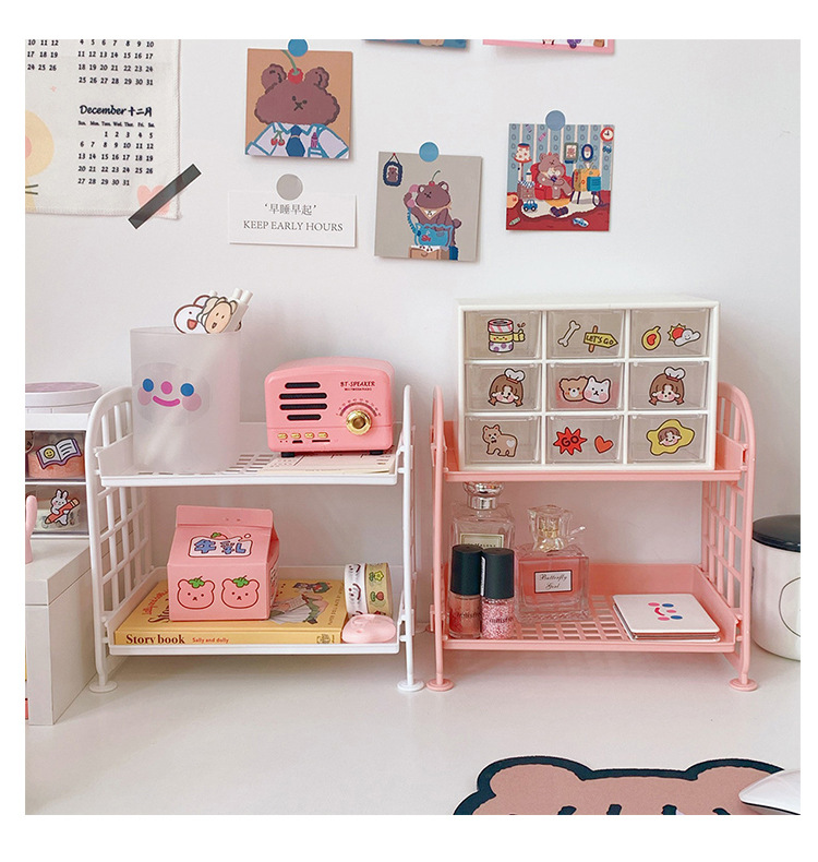 B4DR double-layer desktop storage rack ins cosmetics jewelry folding storage rack simple household bathroom storage rack