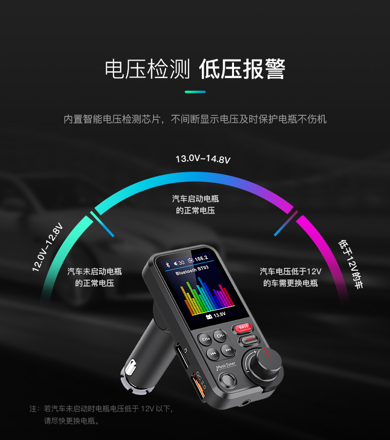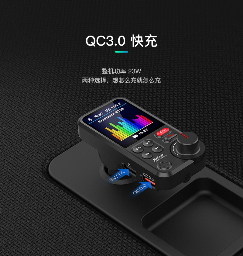 【我们的常规标准功能】:1.蓝牙5.0版IC芯片,一键免提通话,跟手机VOLTE通话效果一样,更低功耗,更稳定2.支持U盘64G+TF卡32G内存音乐,全车低音音质增强,音质纯真,3三SUB口,QC3.0快充+2.4A快充+U盘/1A,总35W大功率