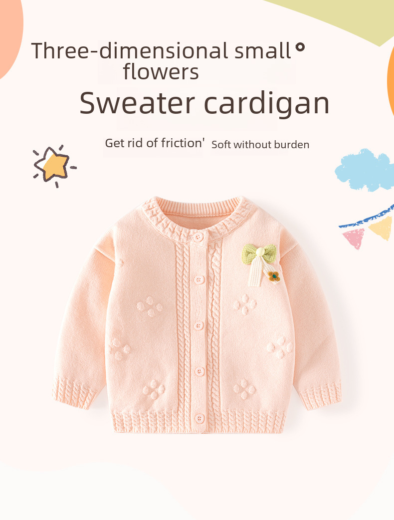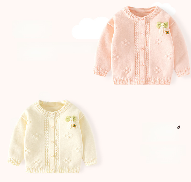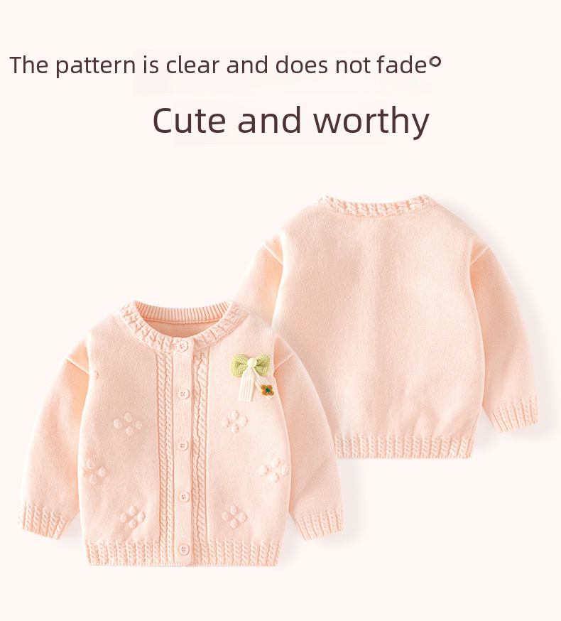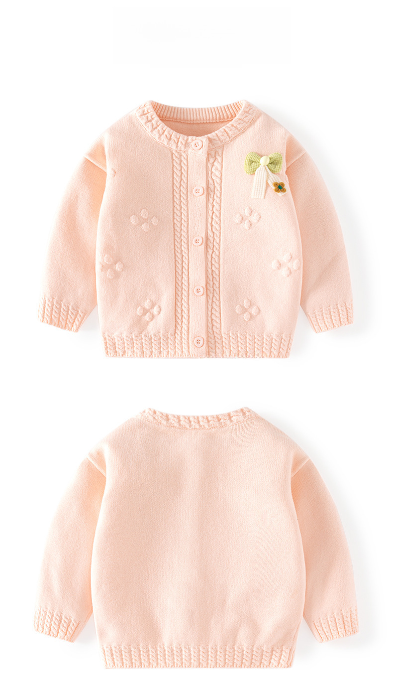 Babu Rain Cotton Sweater for Girls Cardigan Class A Bow Solid Color Knitted Baby Sweater Autumn and Winter Baby Sweater