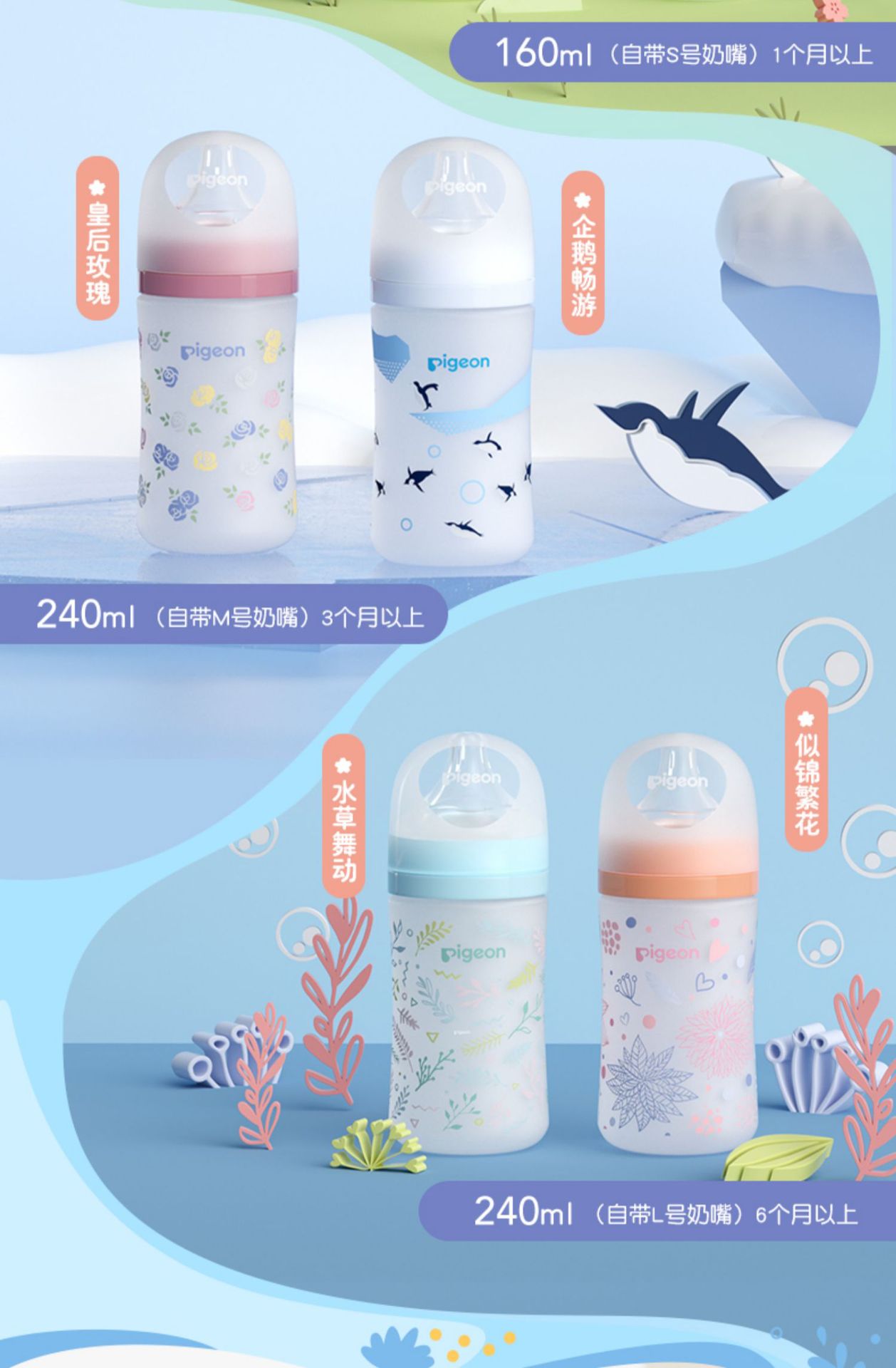 - AA200 romantic cherry blossom 160ml S size pacifier for 1 month