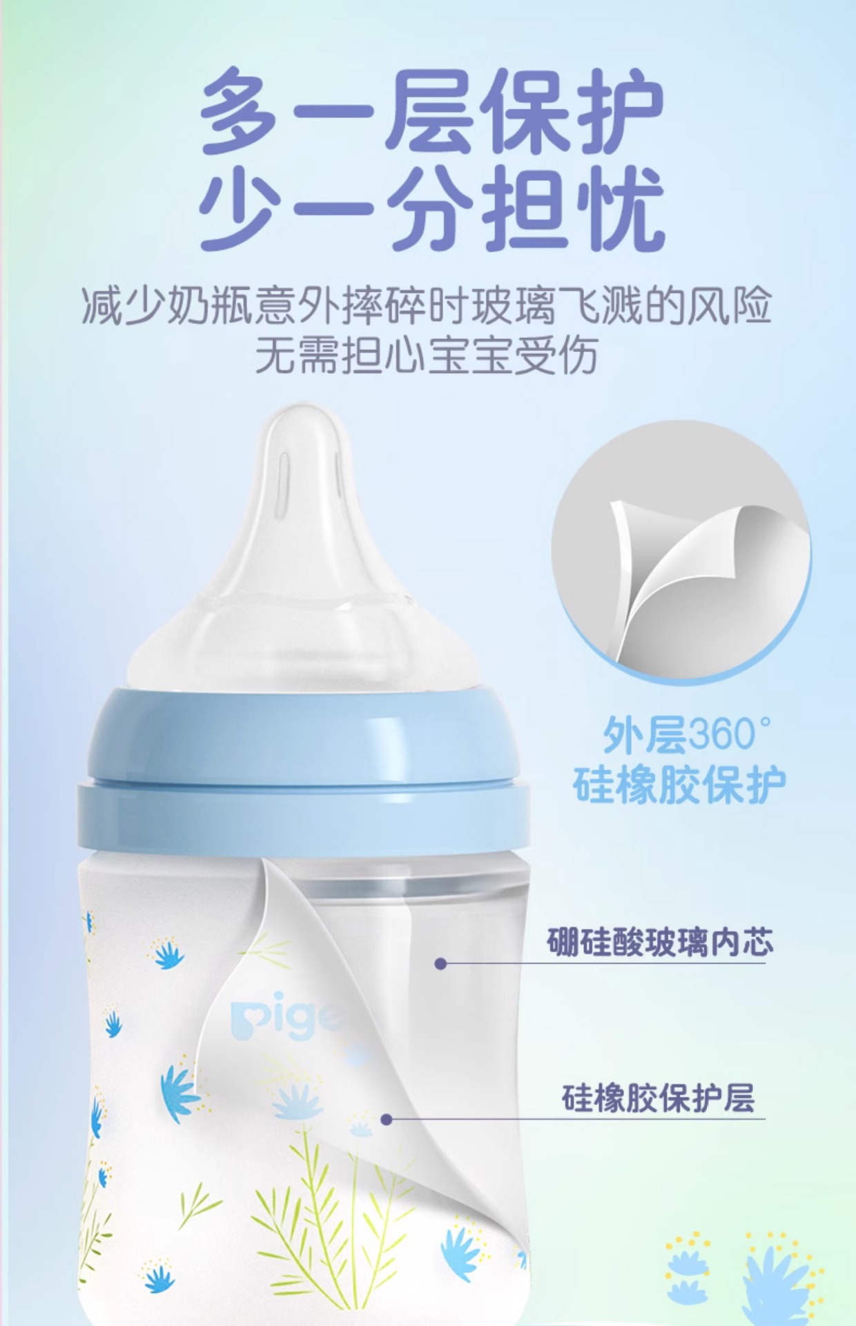 Baby Bottle Natural Solid Silicone Layer 3rd Generation Newborn Baby Wide Caliber Glass Bottle Nipple 1 Year Old