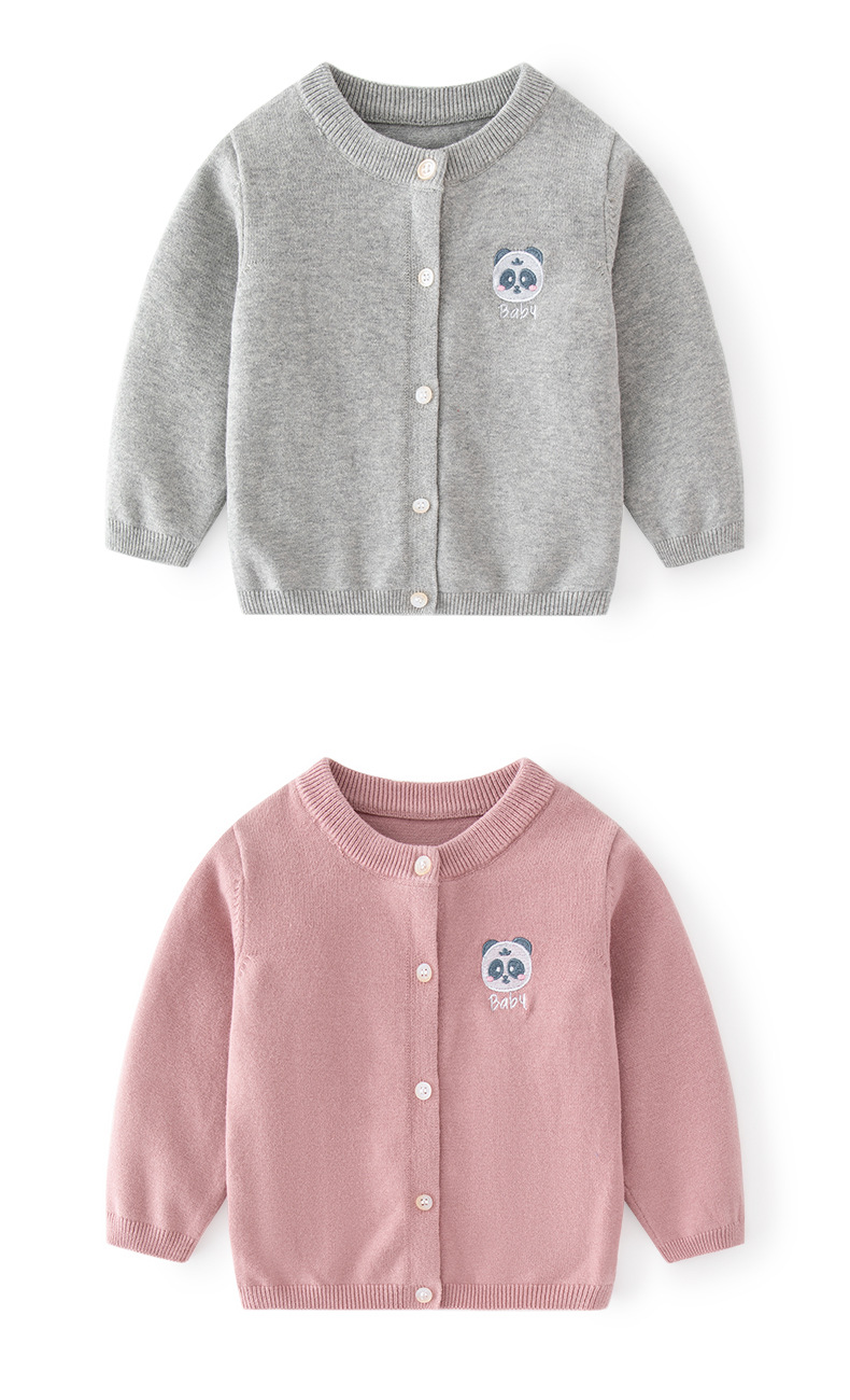 Baby New Embroidered Simple Sweater Spring and Autumn Children s Knitted Cardigan Round Neck Baby Casual Sweater Top