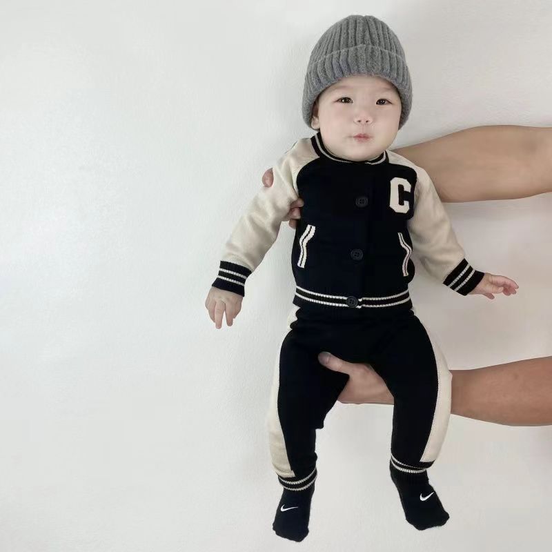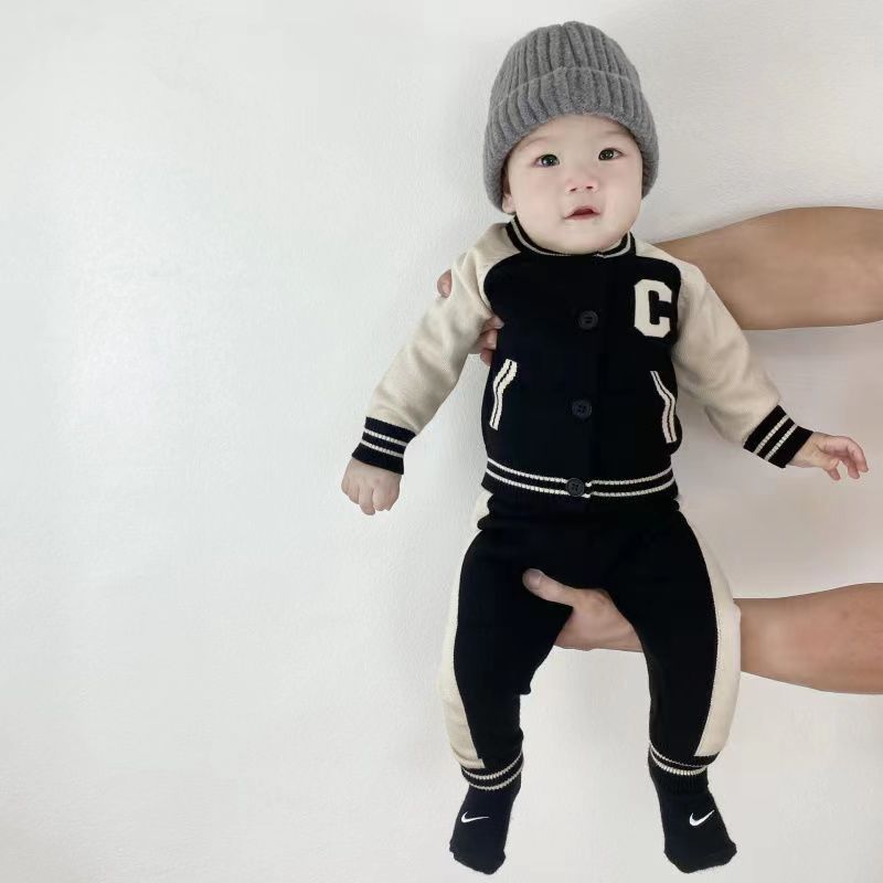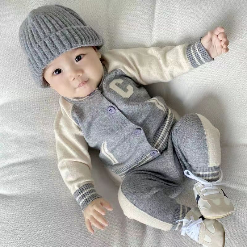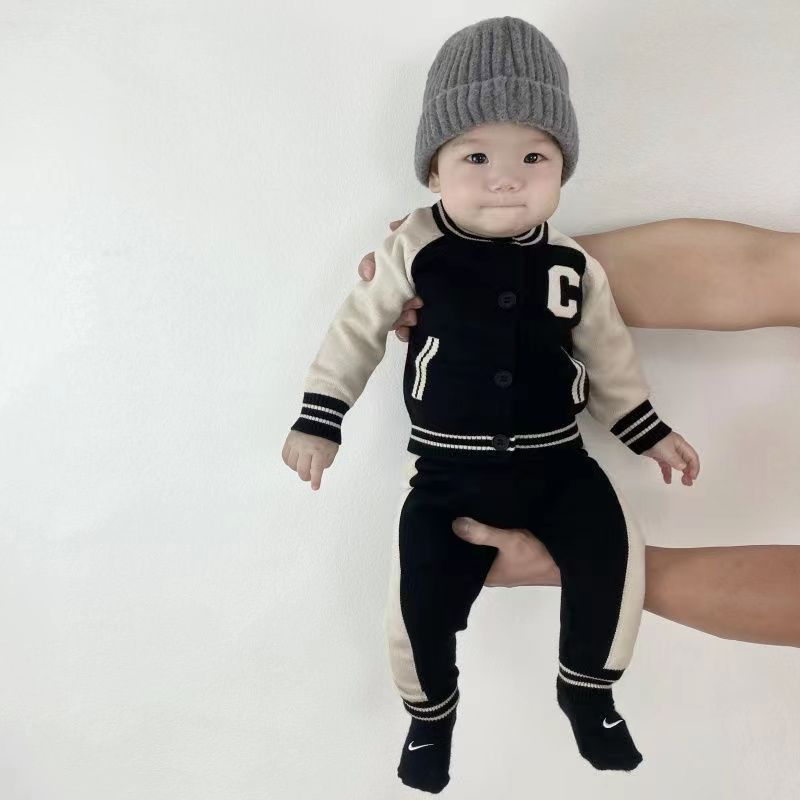 Baby clothes autumn and winter suit boys and girls baby sweater knitted 0 2 years old baby split suit children s two piece suit