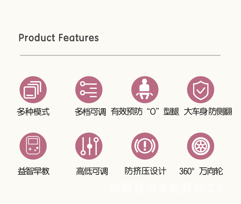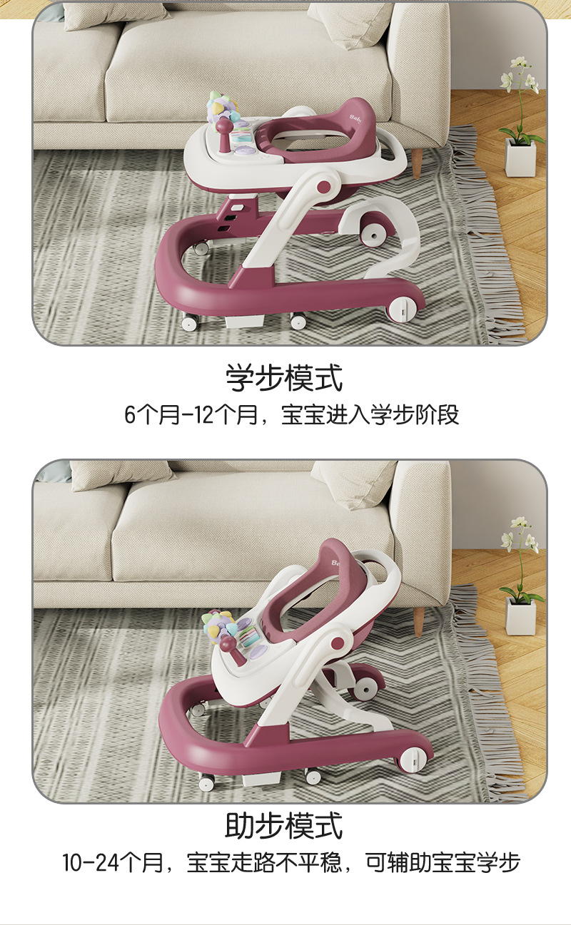 Baby multi function walker non slip anti rollover foldable walker anti O leg multi function music baby