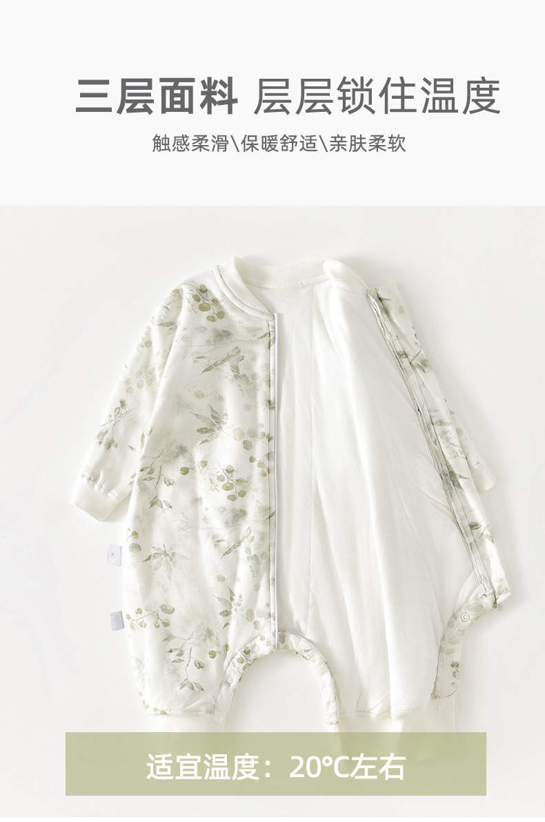 Baby split leg sleeping bag spring and autumn pure cotton thick baby pajamas Four Seasons constant temperature anti kick quilt Four Seasons baby sleeping bag