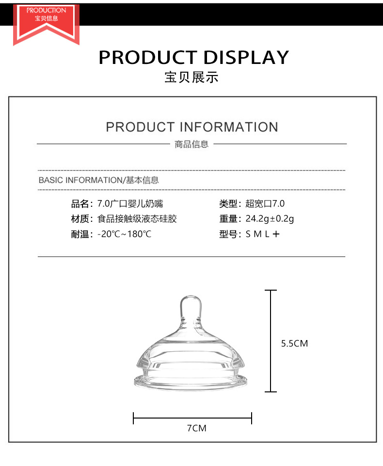 Baby wide mouth nipple with imitation breast milk solid liquid silicone 7cm super wide diameter bottle
