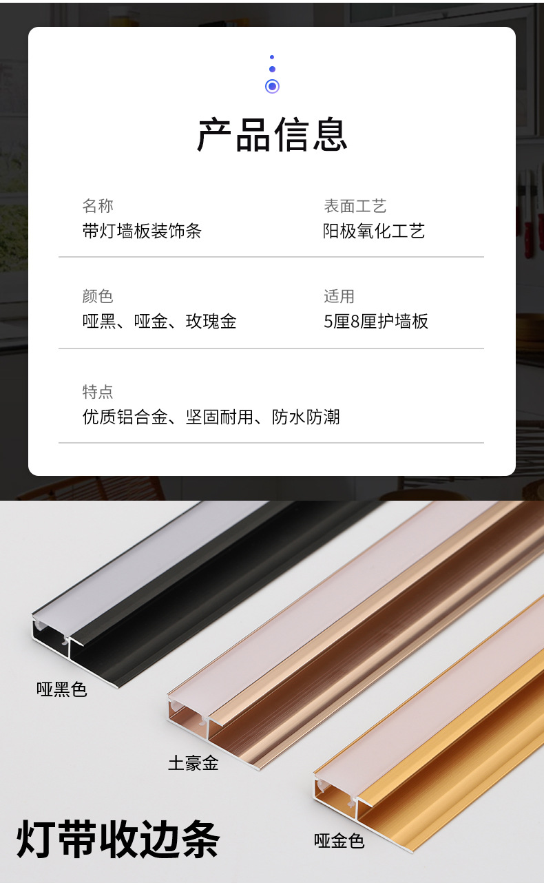 Background wall siding metal aluminum alloy led lights with luminous sun corner decoration trim strip closing strip