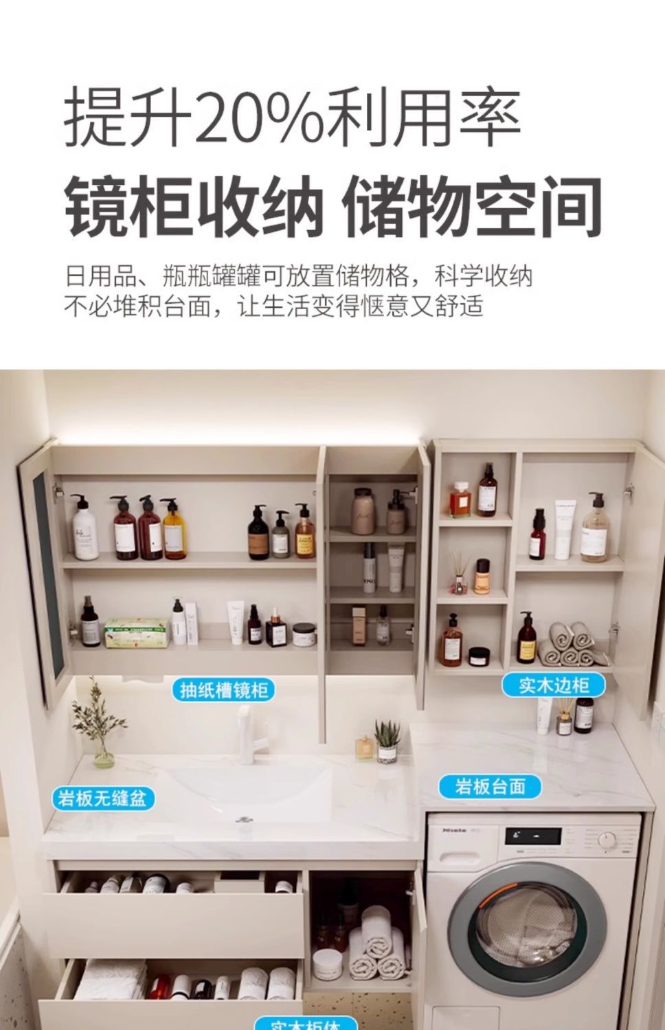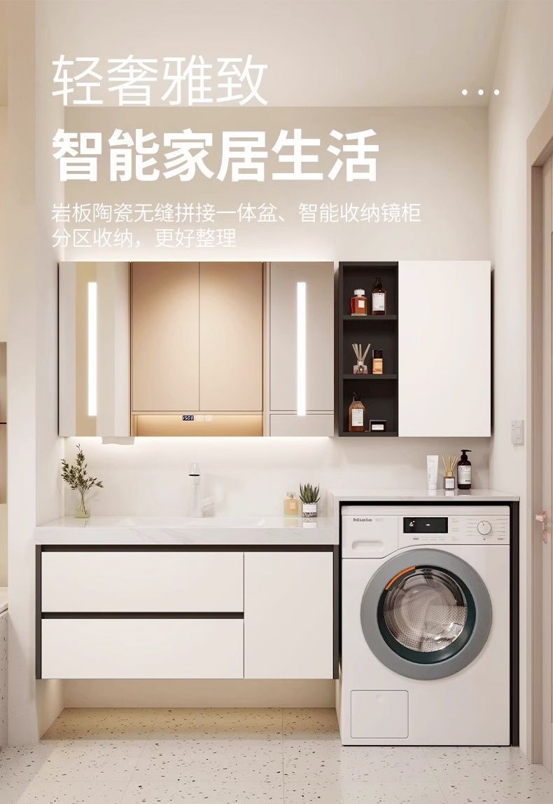 Balcony Rock Board Seamless Bathroom Cabinet Washbasin Washbasin Integrated Combination Washing Machine