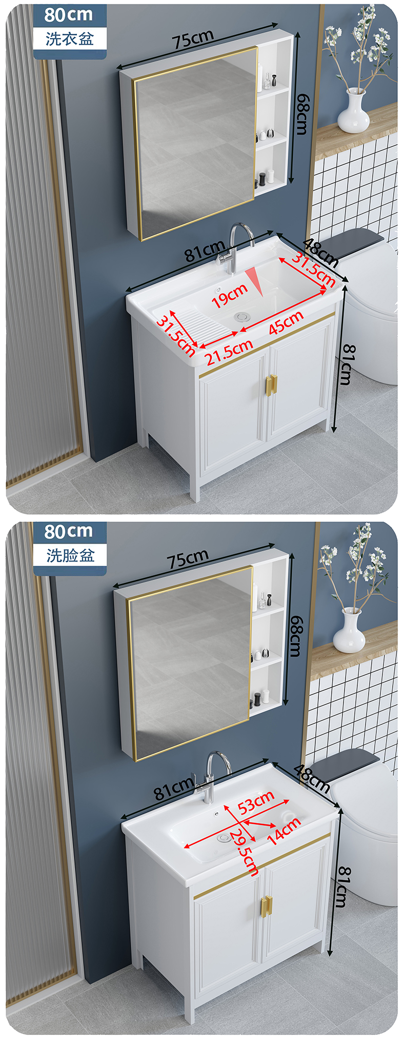 - High-grade gold 80CM + washboard + mirror cabinet accessories are complete