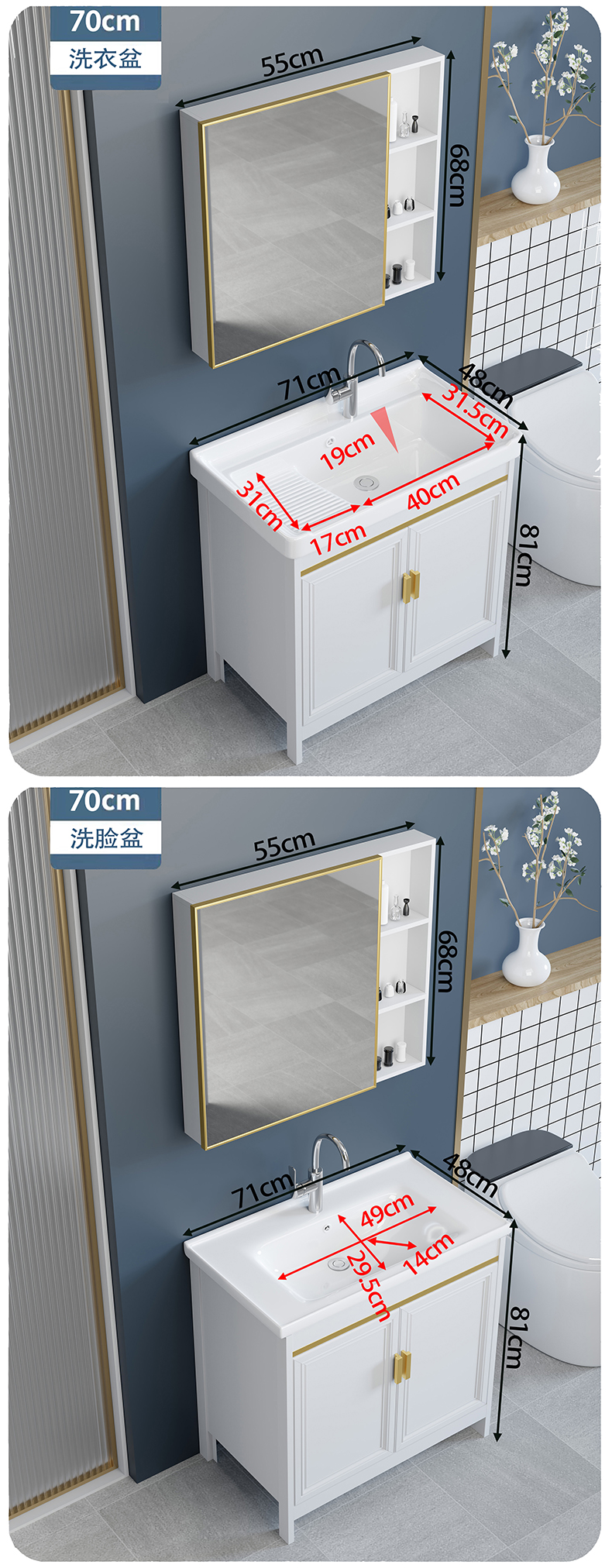 - High-grade gold 70CM + washboard + mirror cabinet accessories are complete
