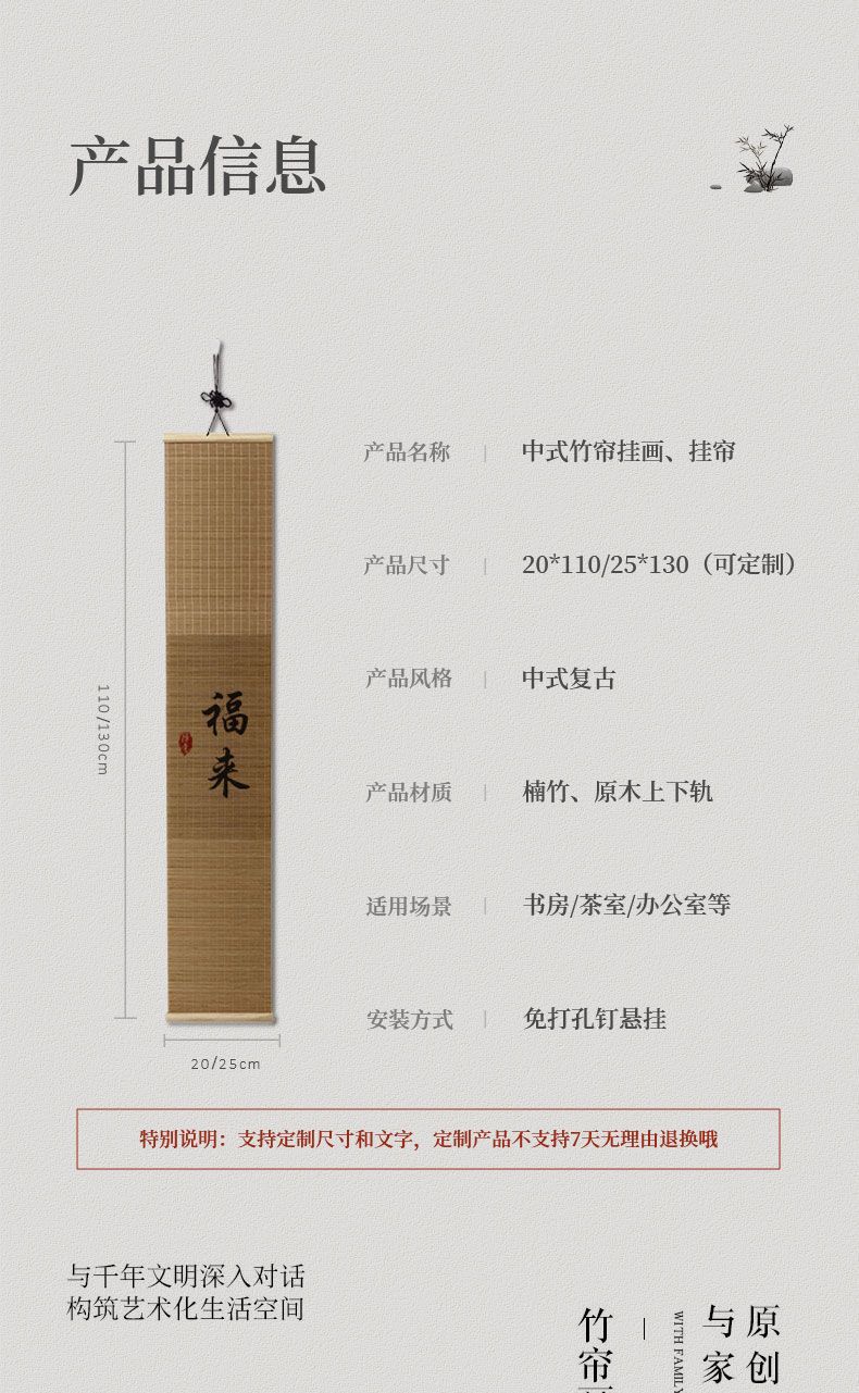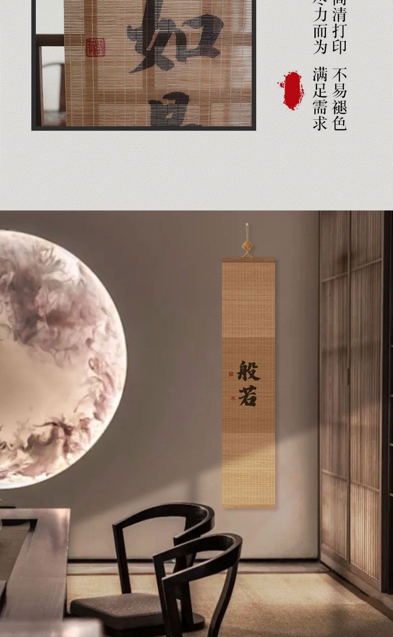 Bamboo Curtain decorative painting study inspirational new Chinese triple Zen hanging painting enterprise long pendant hallway decoration