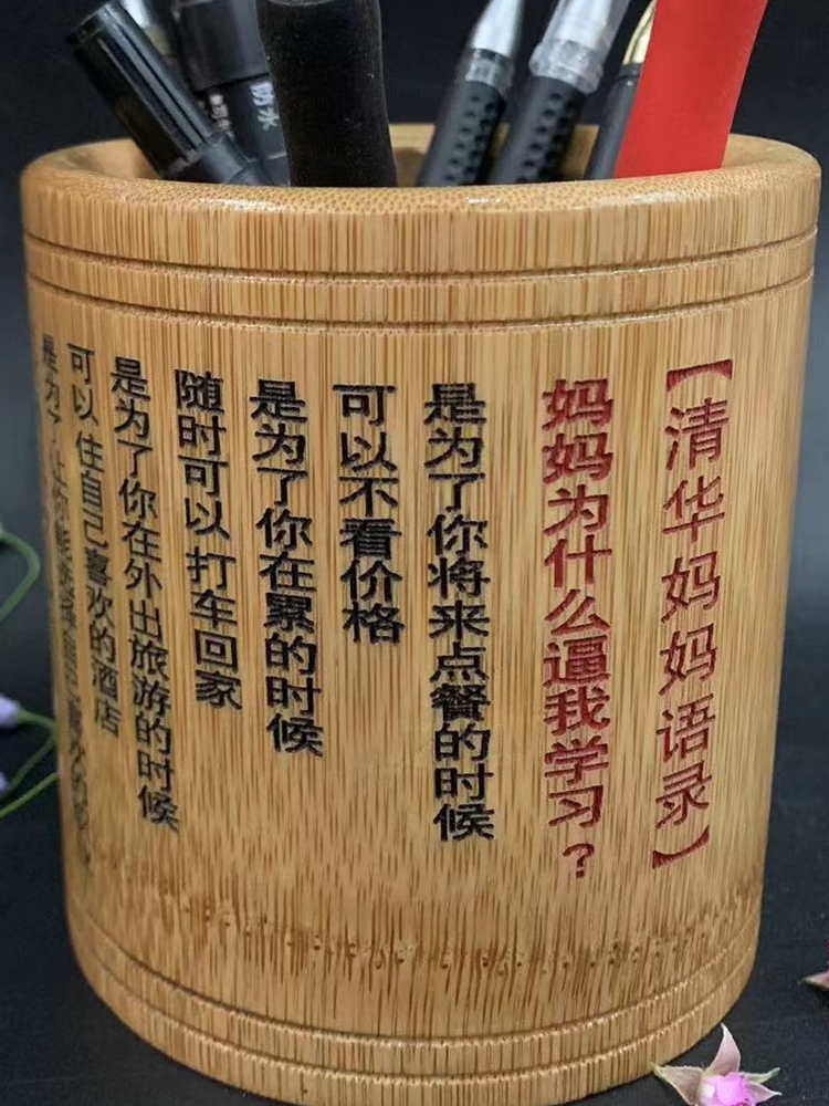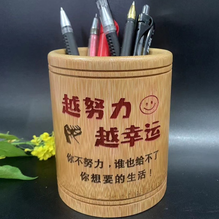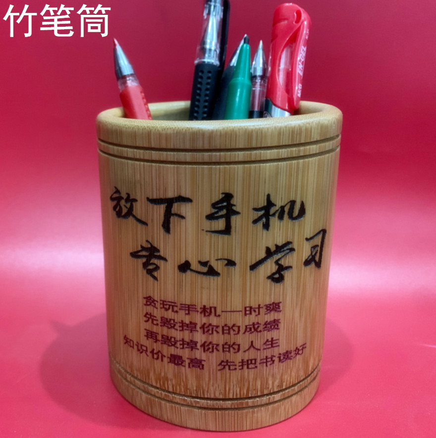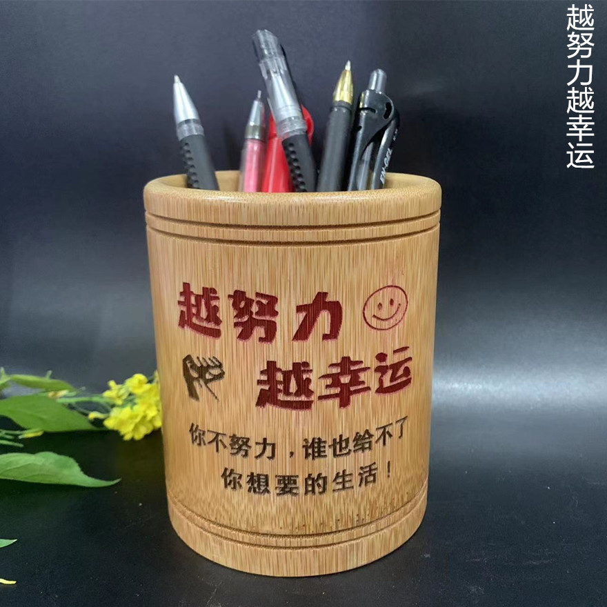 Bamboo carving pen holder primary and secondary school students inspirational students fixed lettering school supplies creative desk bucket study storage box