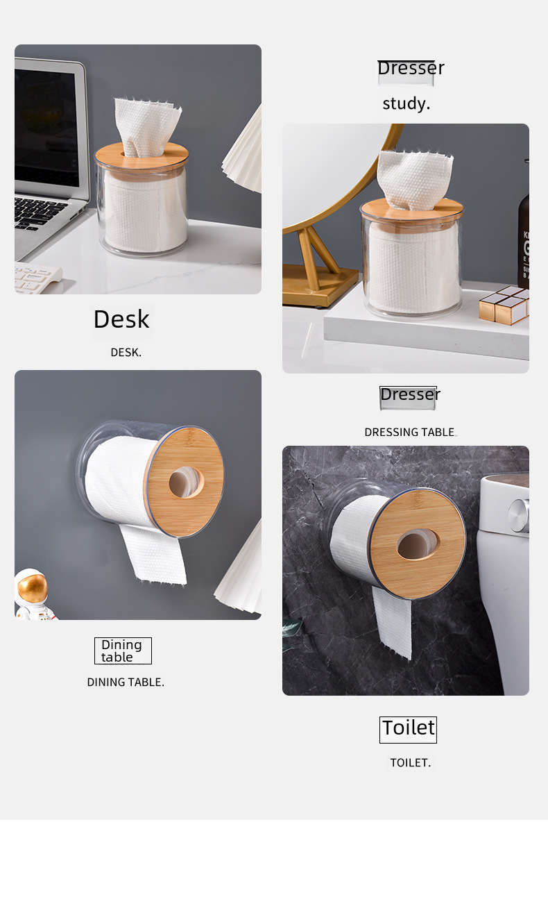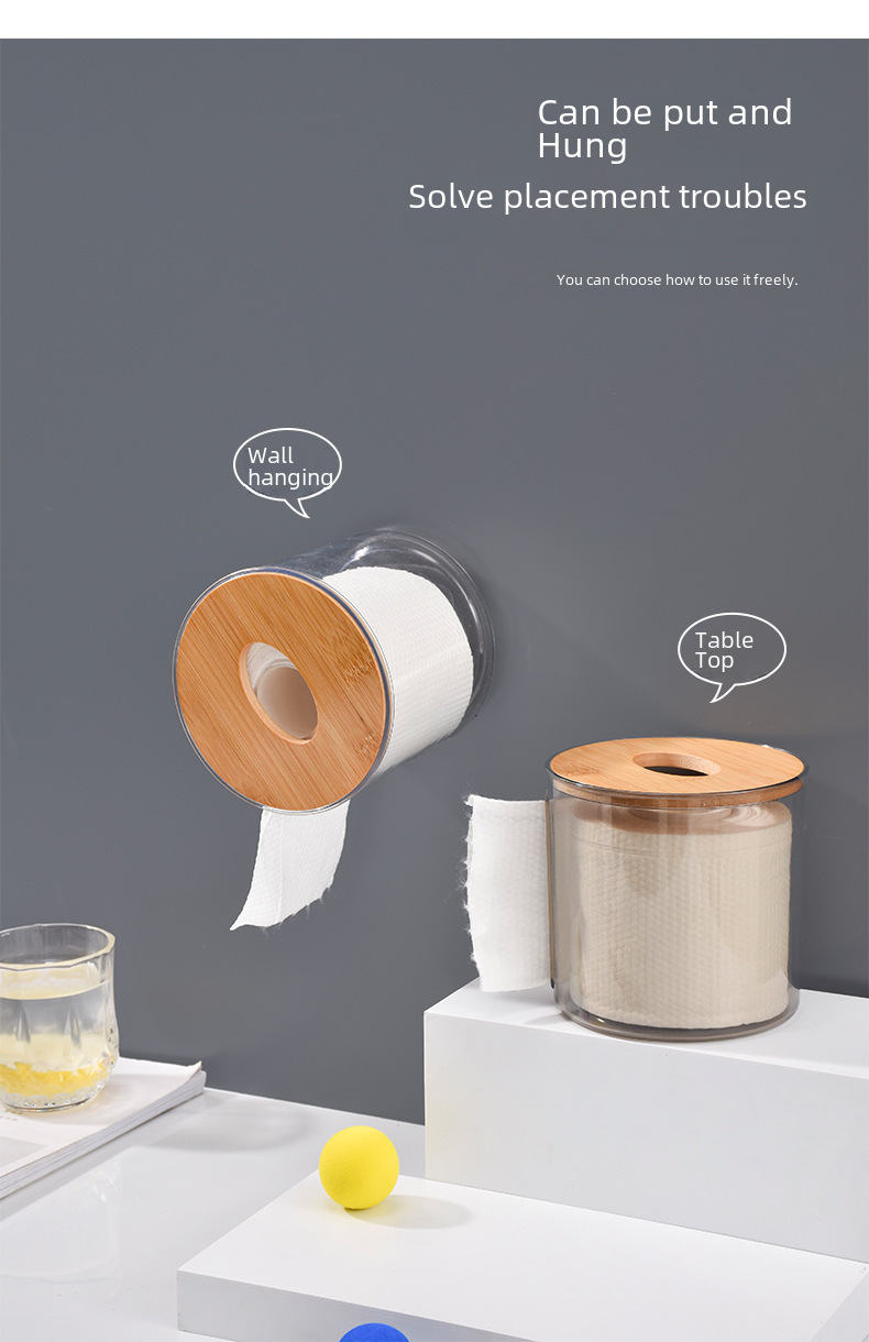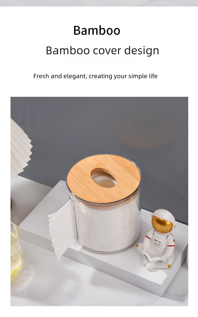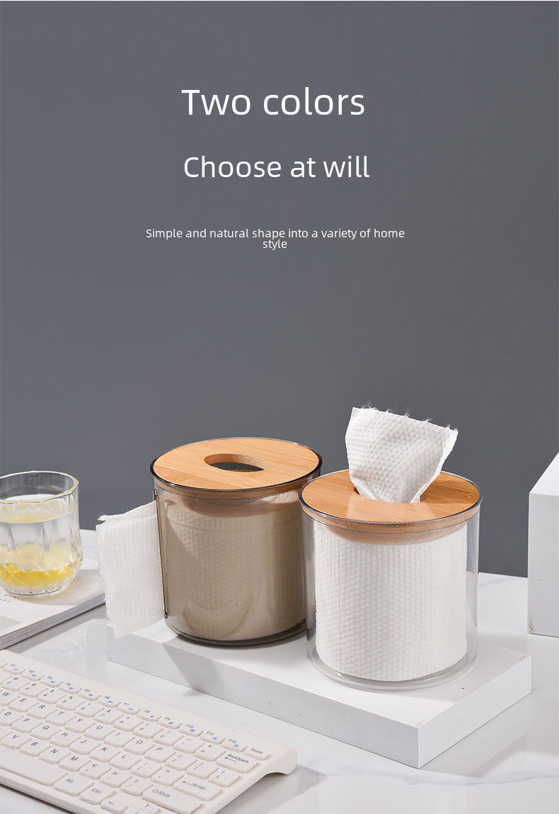 Bamboo wood cover round side tissue box creative double pumping paper tube kitchen bathroom roll paper storage tube
