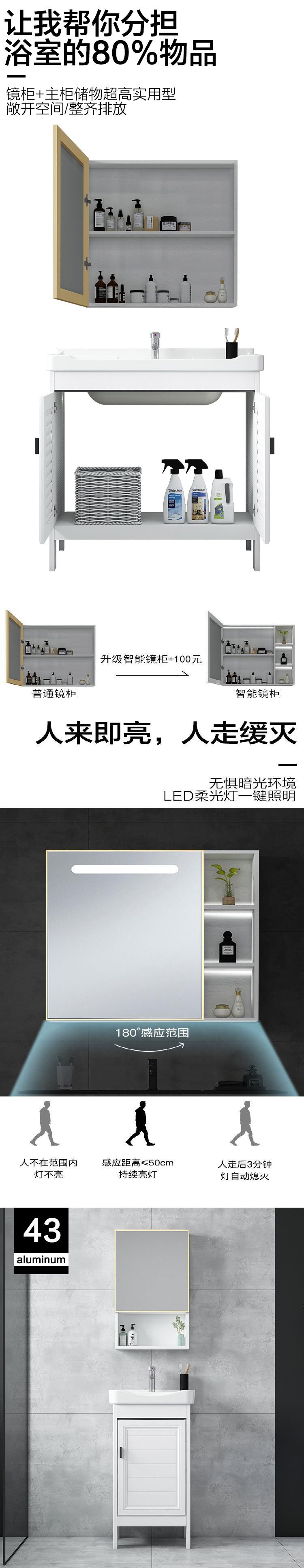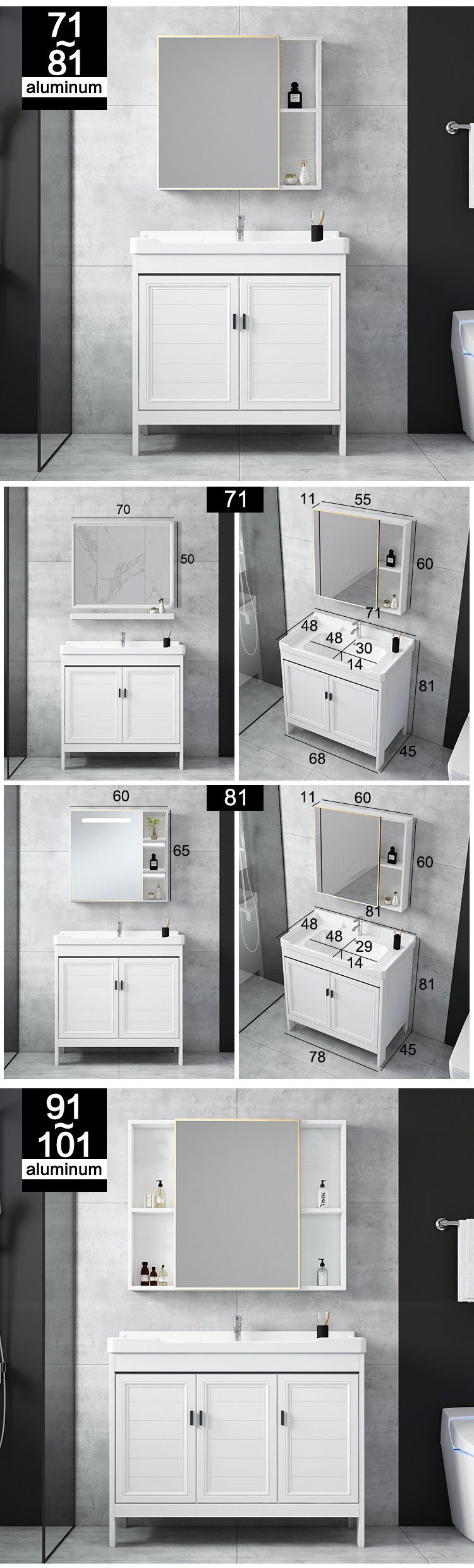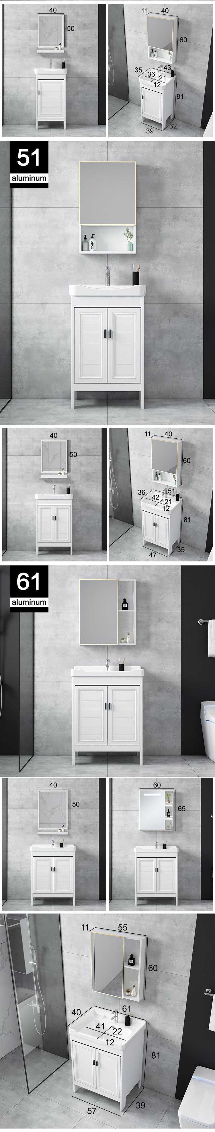 - Door 51 floor Cabinet Full Set + White Mirror Cabinet-43cm (inclusive)-81cm (inclusive)
