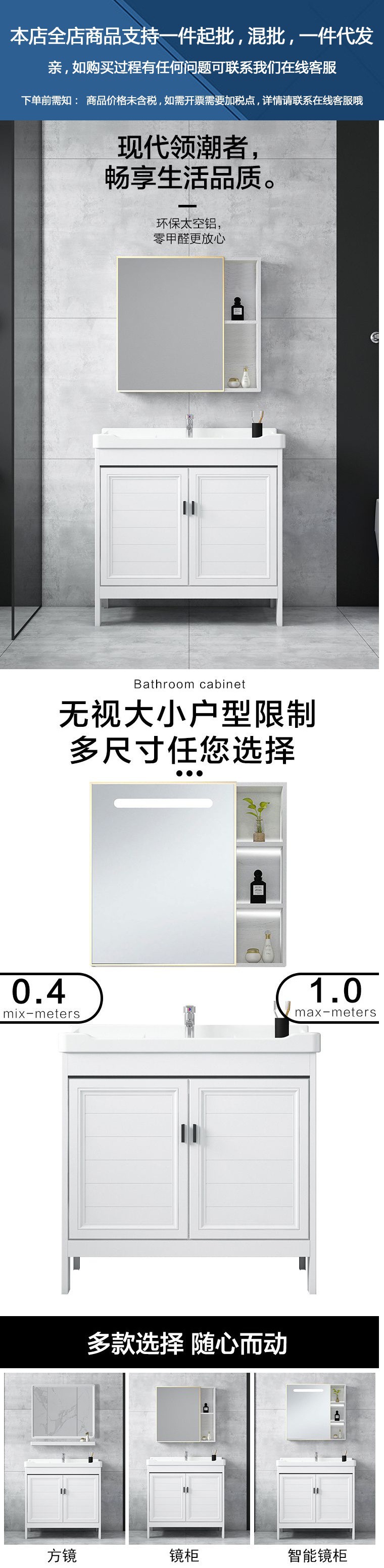 - Door 80 floor Cabinet Full Set + White Mirror Cabinet-43cm (inclusive)-81cm (inclusive)