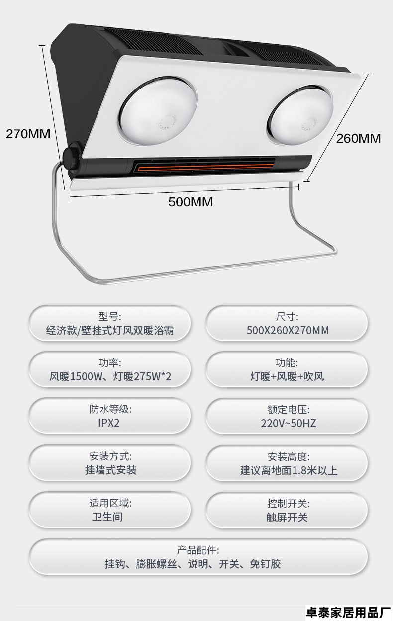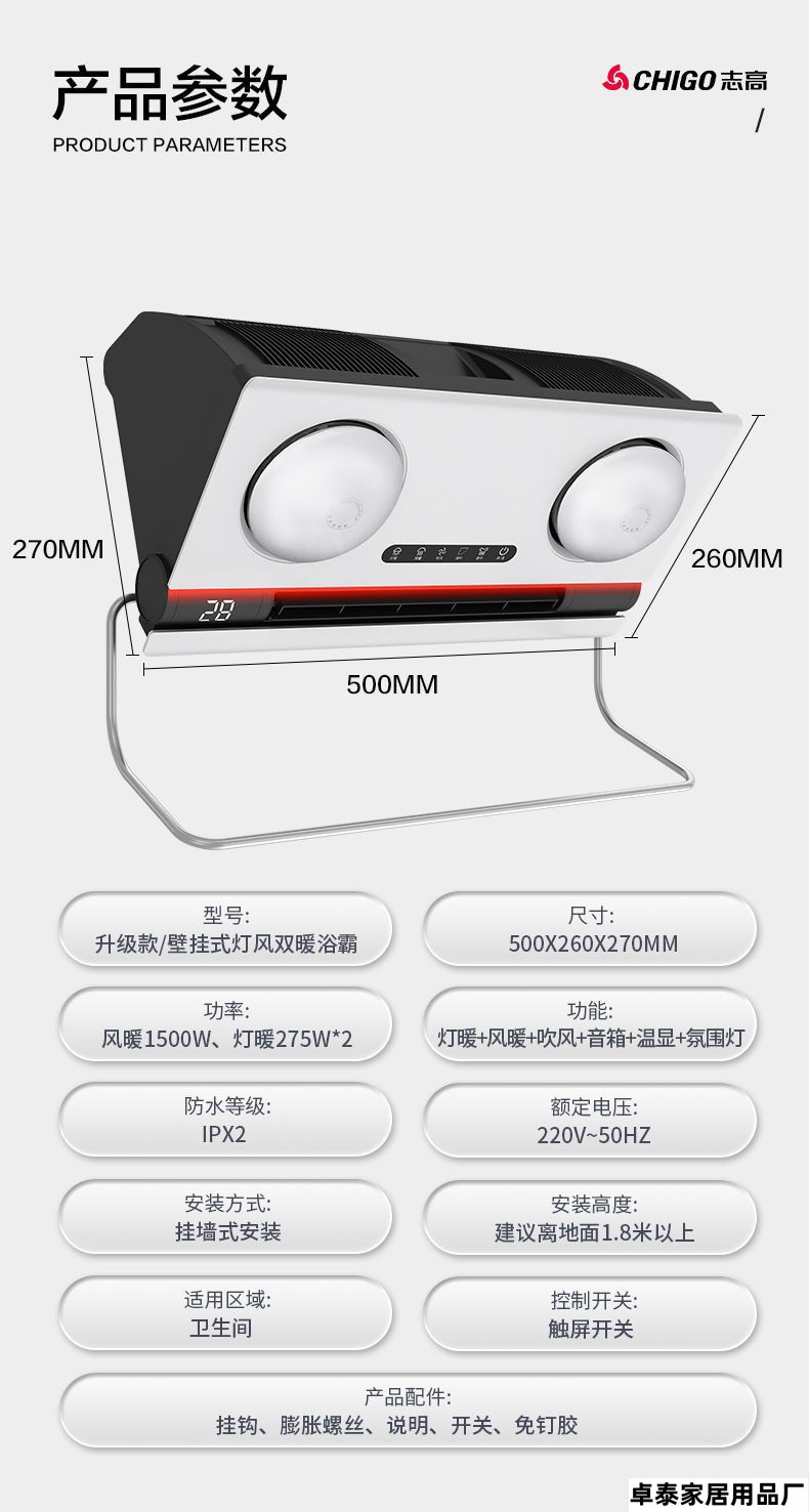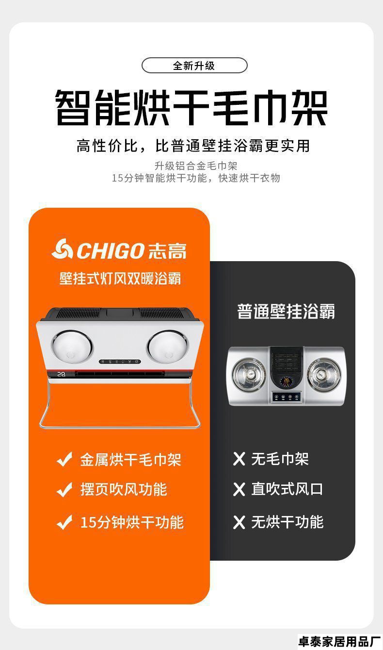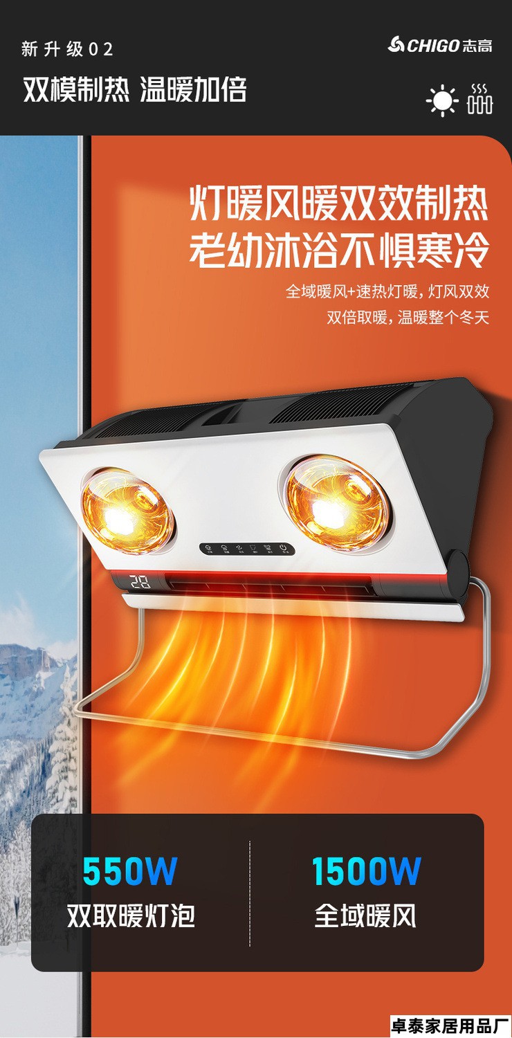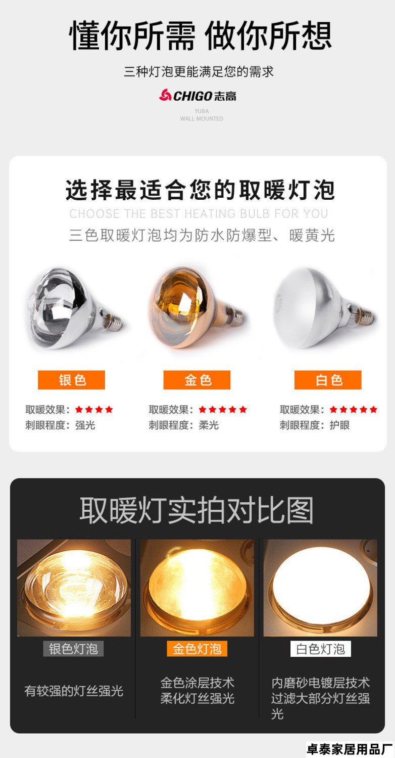 Batch Zhigao wall mounted bath heater non perforated toilet bathroom wall mounted heating lamp warm air warm integrated waterproof explosion proof