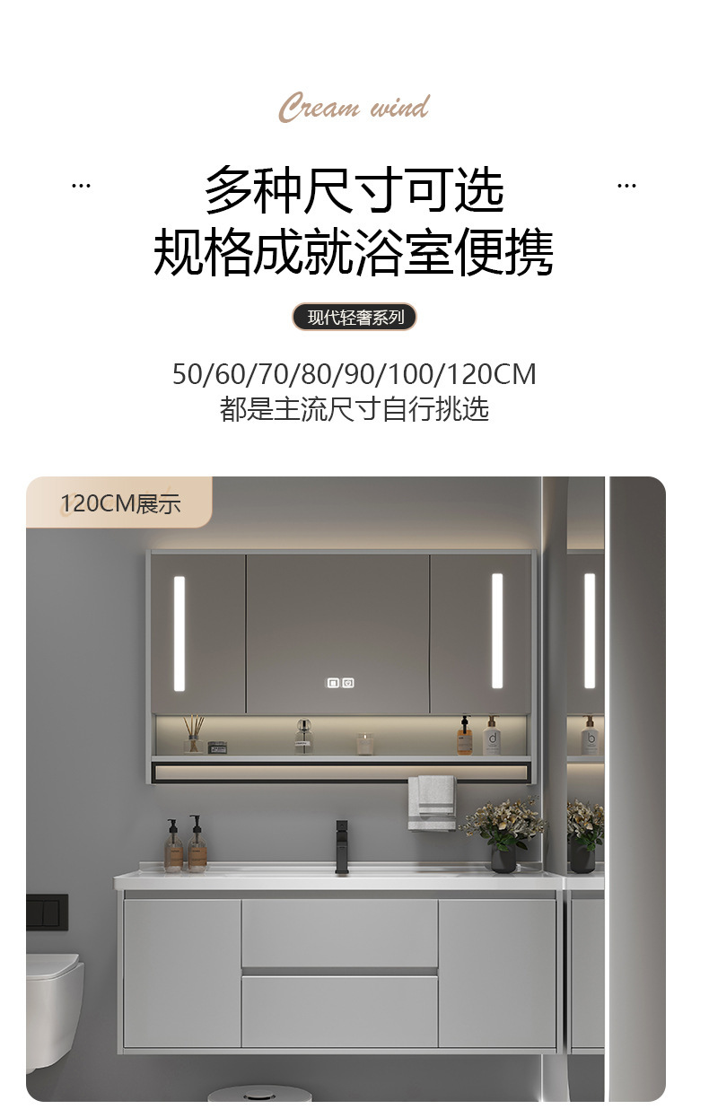 - 120CM bright gray ordinary mirror cabinet -48 wide