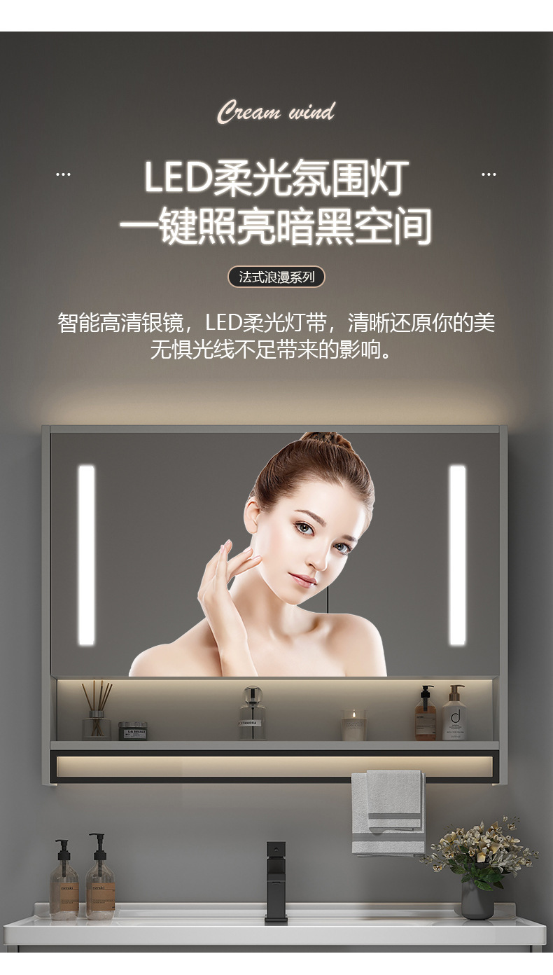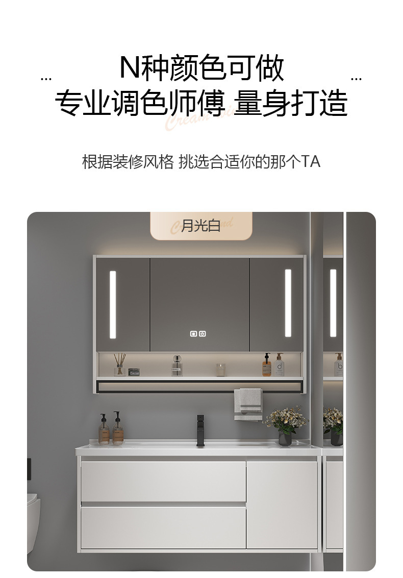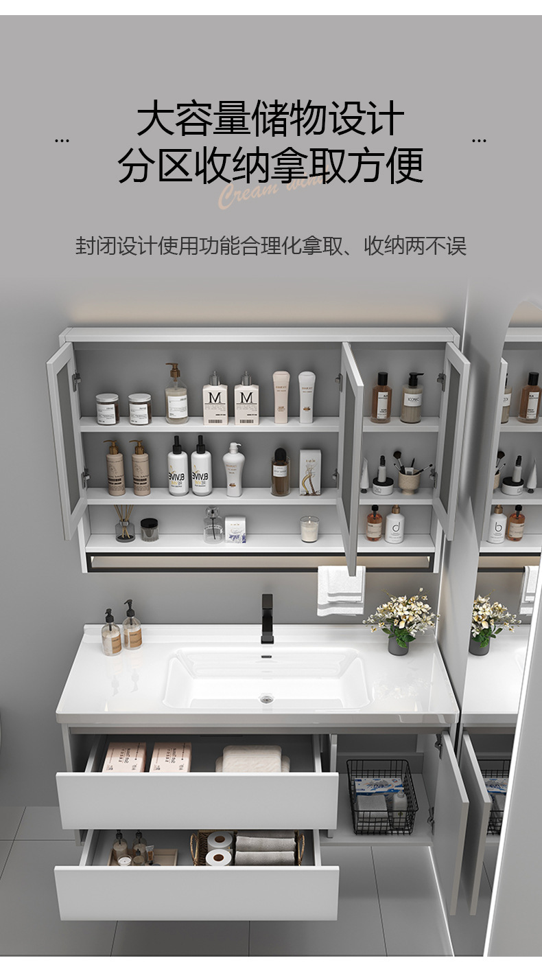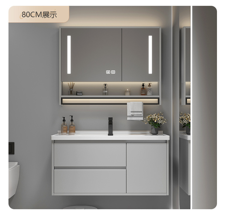- 80CM Moonlight White Ordinary Mirror Cabinet