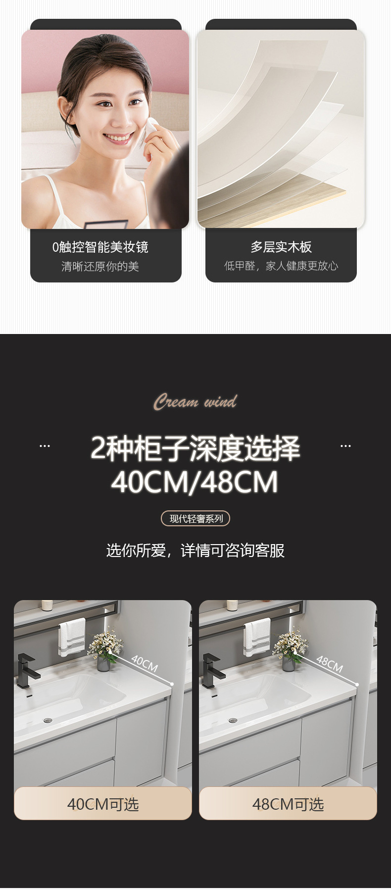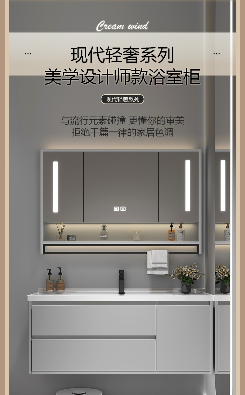 - 50CM deep space gray intelligent mirror cabinet -36 wide