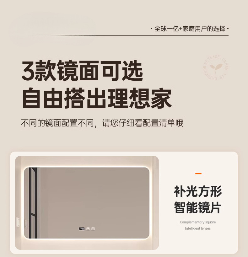 - W1080 cream wind 60cm double door -60 intelligent square mirror to send hot and cold faucet