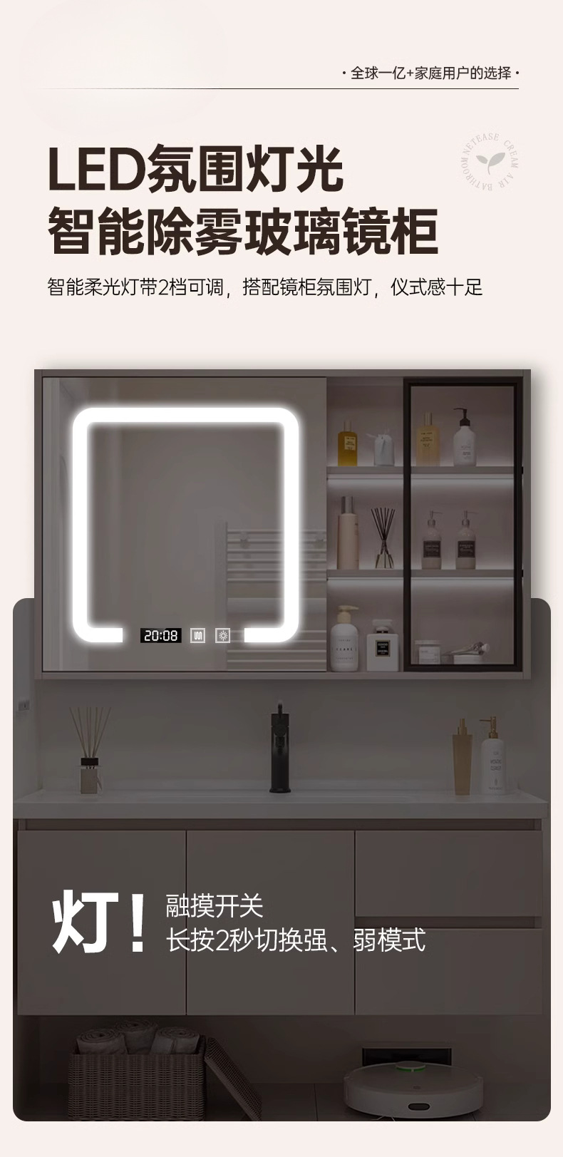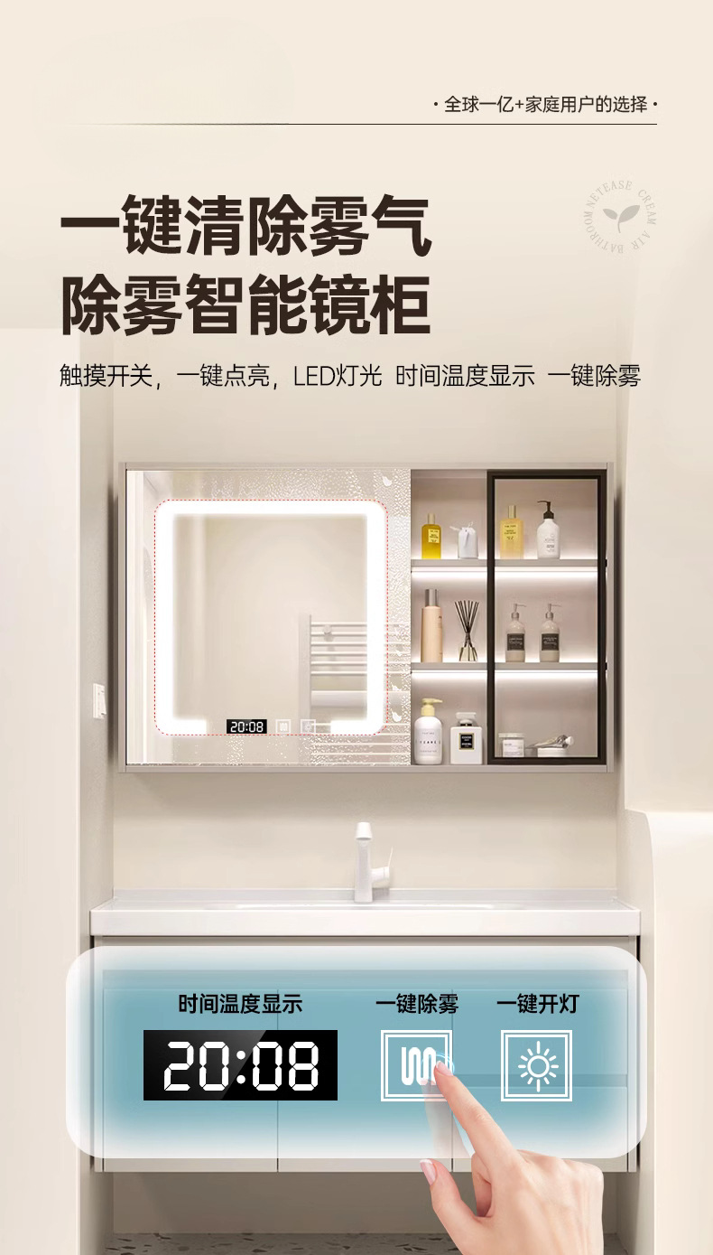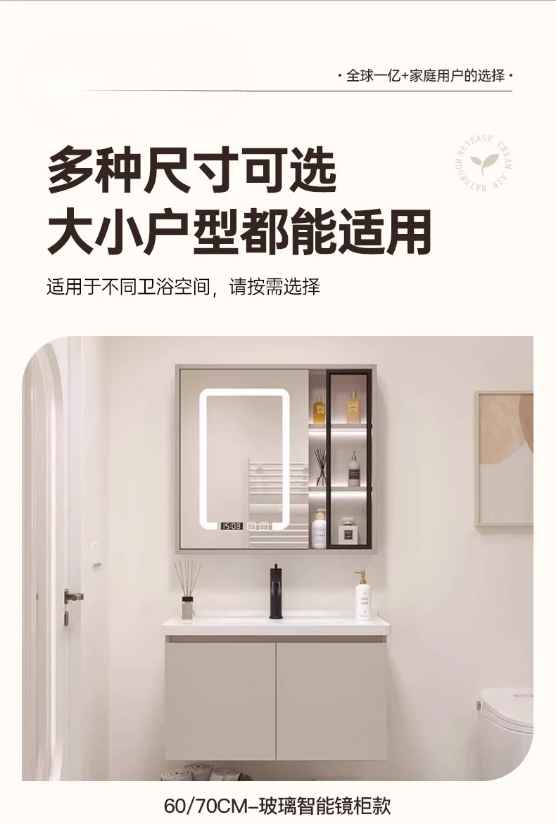 - 1080 cream wind 70cm double door -60 B intelligent mirror cabinet to lift faucet
