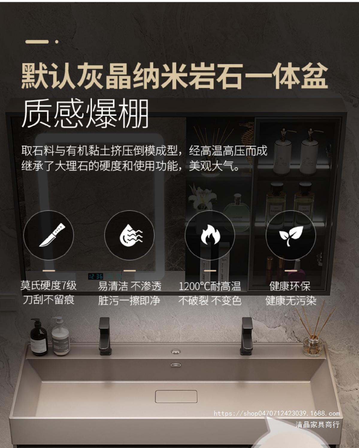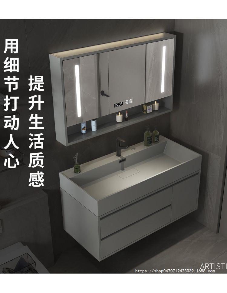 - light gray-Hidden Water Drain [Hanging Cabinet] -1 m Smart Mirror Cabinet Warranty (New Dragon