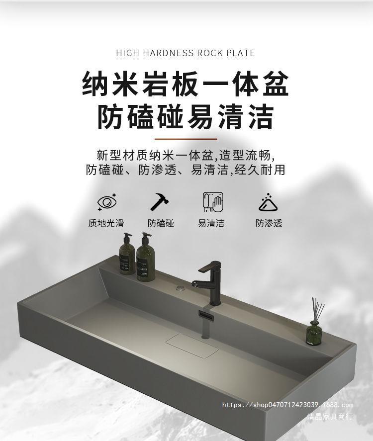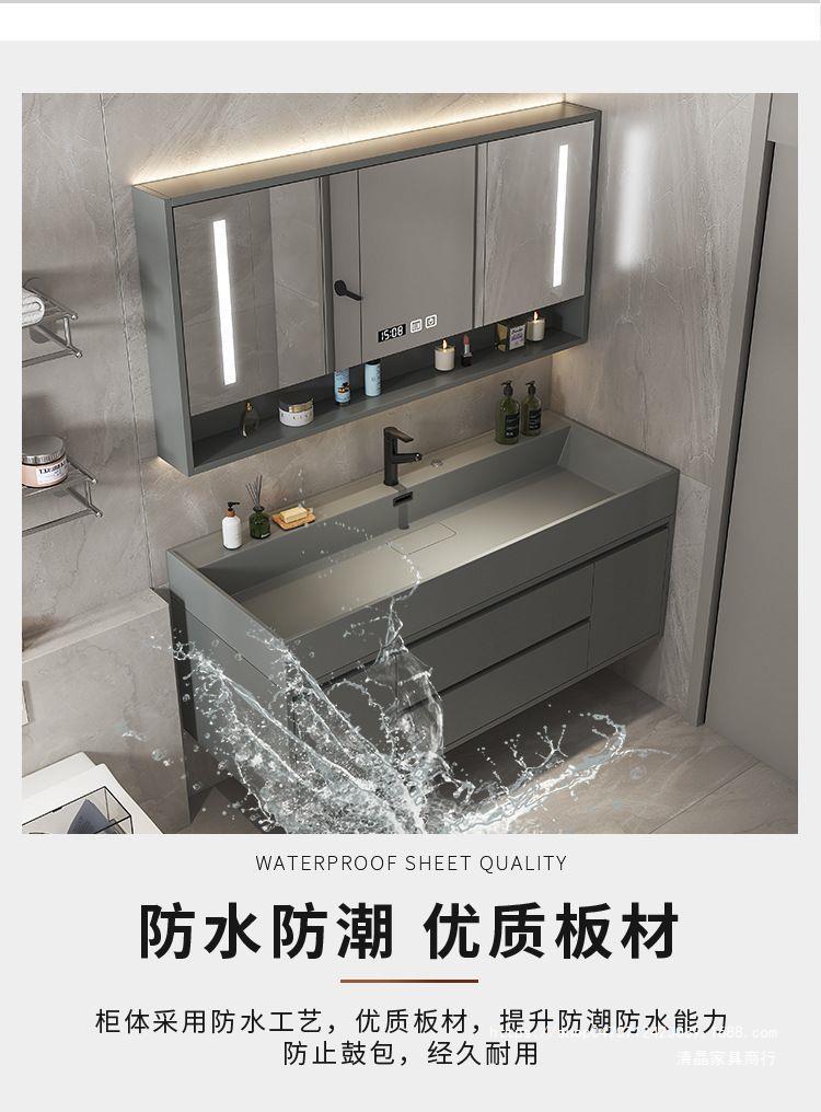 - light gray-Hidden Water Drain [Hanging Cabinet] -0.8 m Square Mirror Warranty (New Dragon