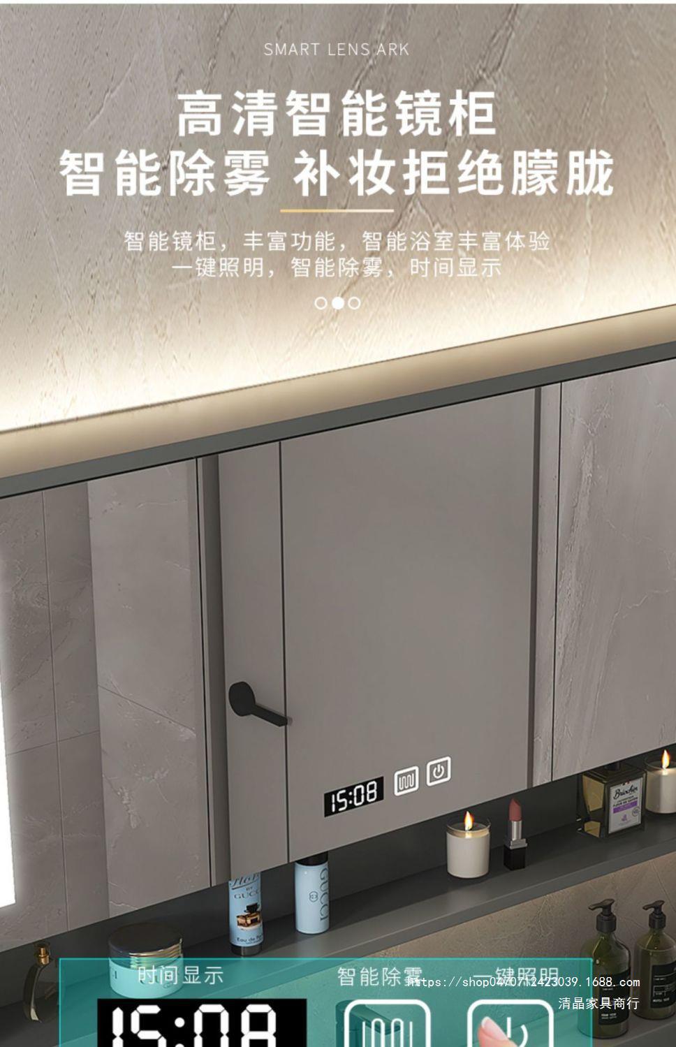 - light gray-Hidden Water Drain [Hanging Cabinet] -0.8 m Light Luxury Mirror Cabinet Warranty (New