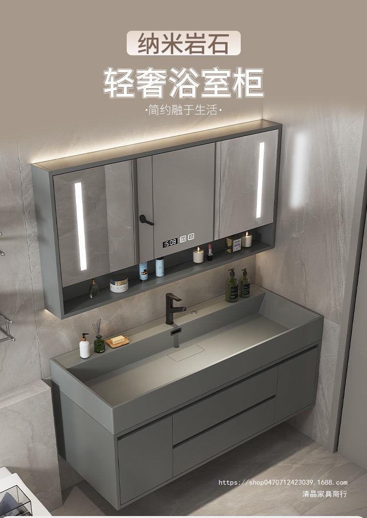 - light gray-Hidden Water Drain [Hanging Cabinet] -1.2 m Square Mirror Warranty (New Dragon