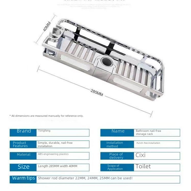 Easy Installation:This bathroom accessory shelf is designed for easy installation without the need for drilling, making it perfect for quick set-up in your bathroom.