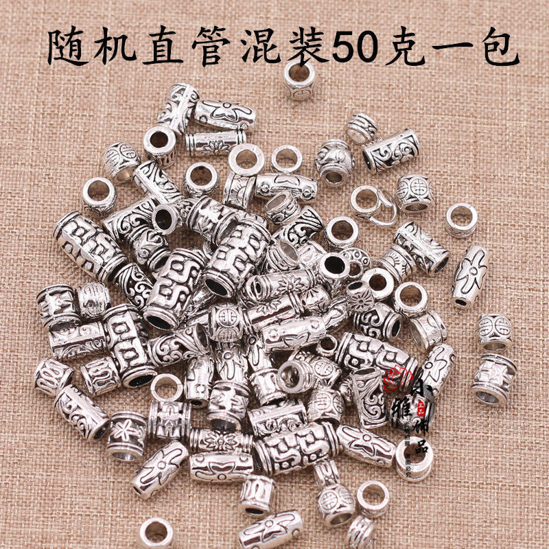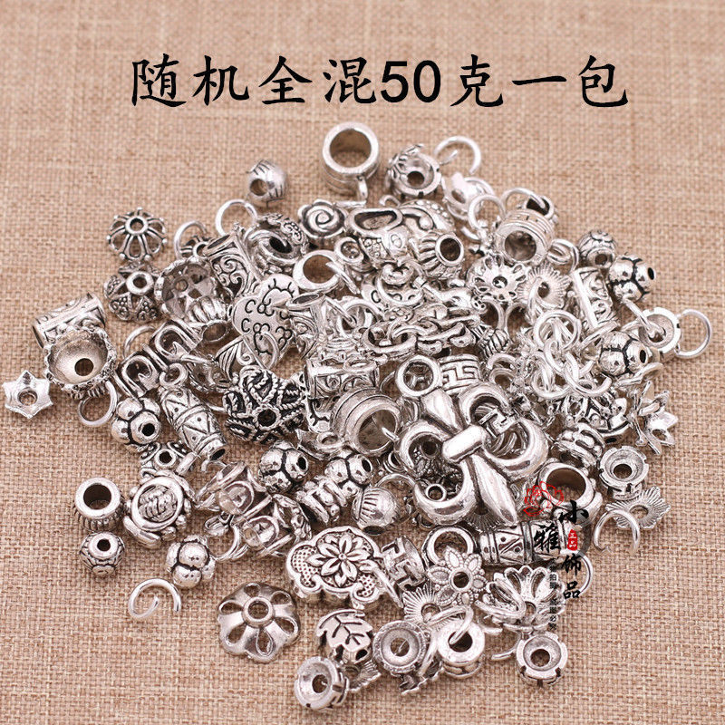 Beaded accessories Tibetan silver mixed 50g flower holder beads spacer small fish pendant tee short tube DIY string woven material