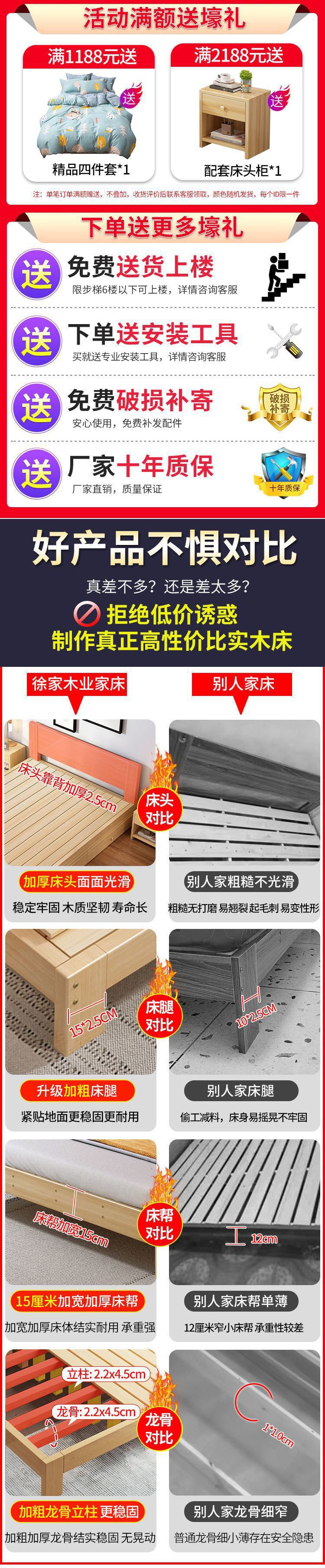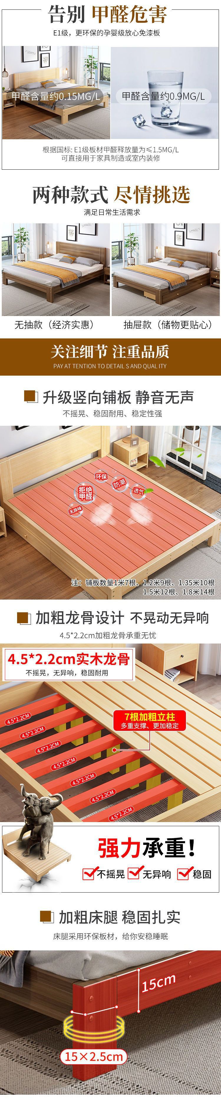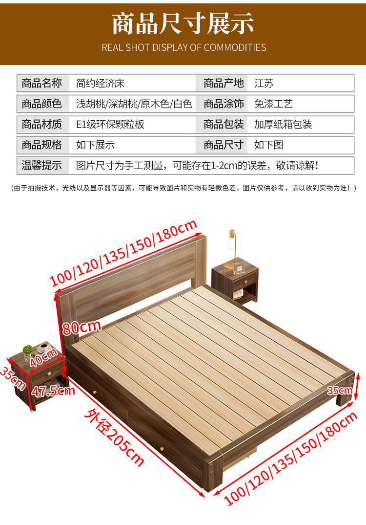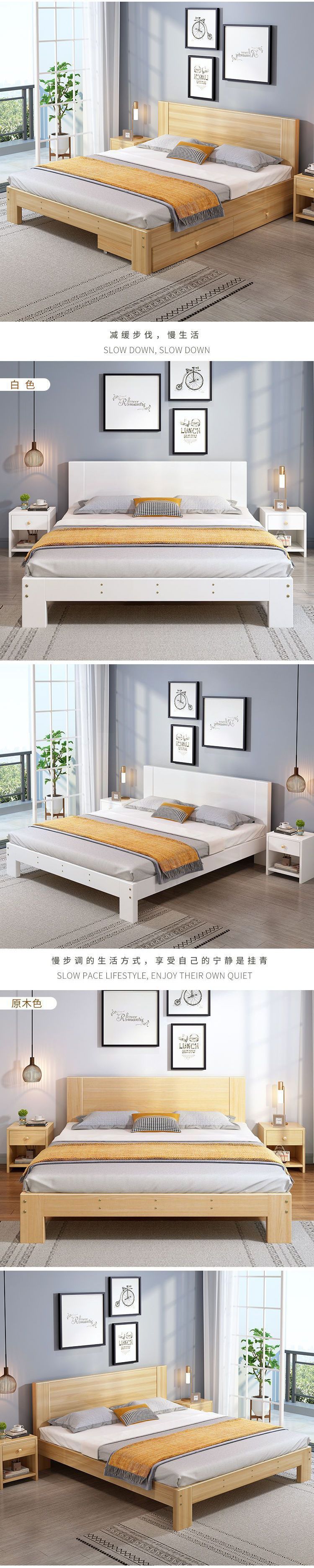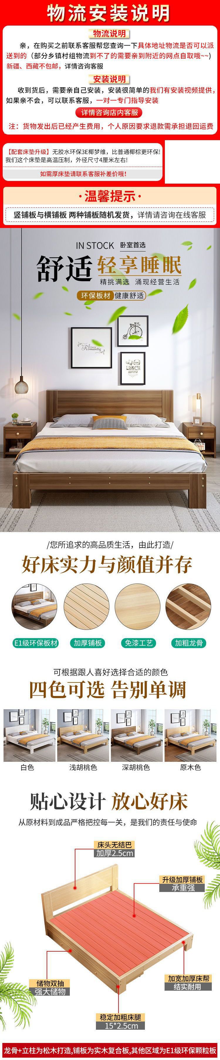 Bed 1.5 m Household Double Bed Solid Wood 1.8 Rental Room Bed Master Bedroom Economical 1 m Simple Plate Single Bed